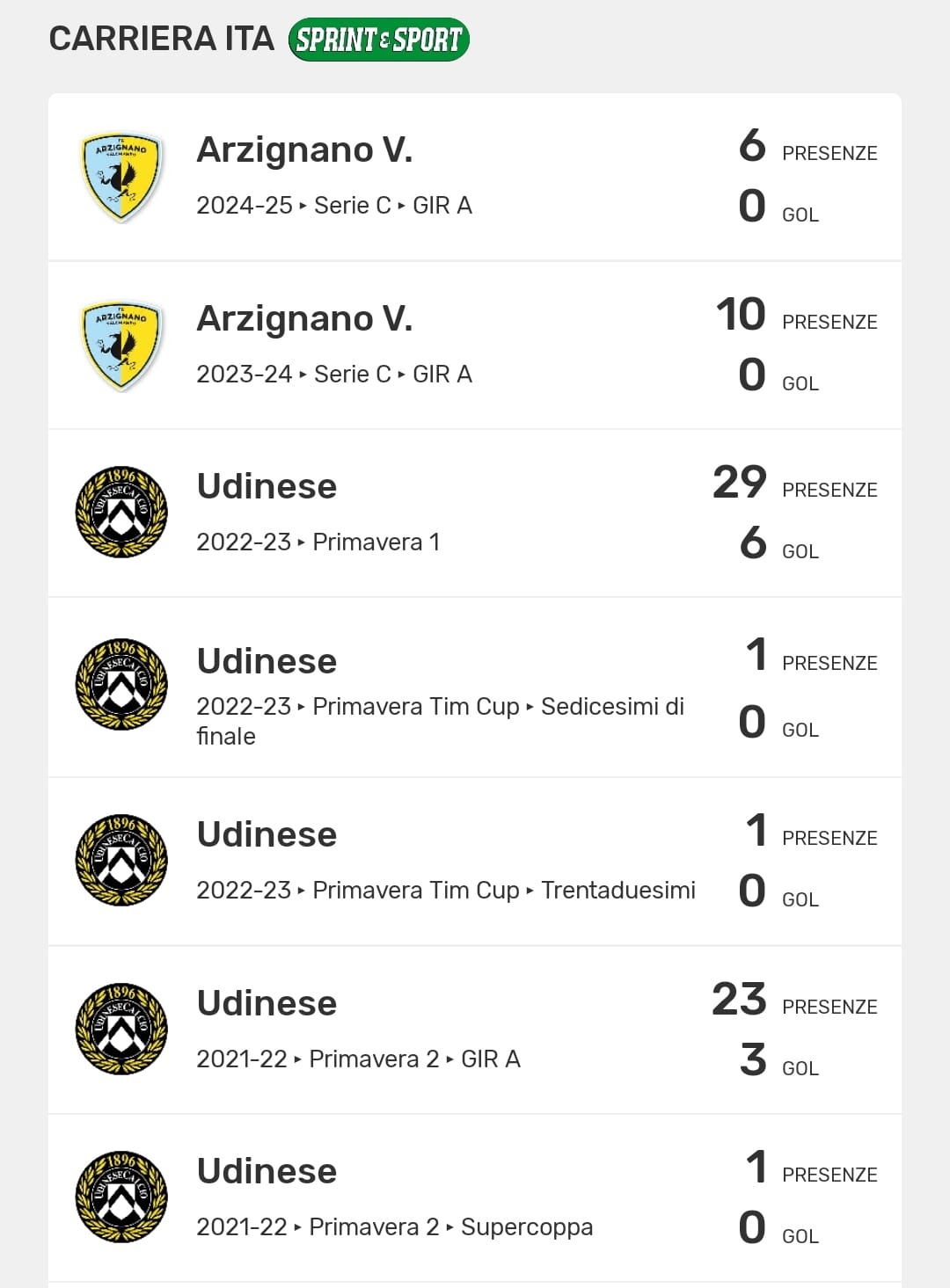 SANGIULIANO CITY SERIE D • Alberto Centis, centrocampista classe 2004 cresciuto nel vivaio dell'Udinese