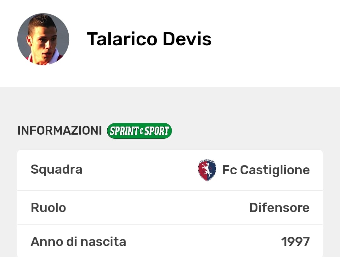 La scheda di Devis Talarico: sulla nostra App tutti i numeri della sua carriera