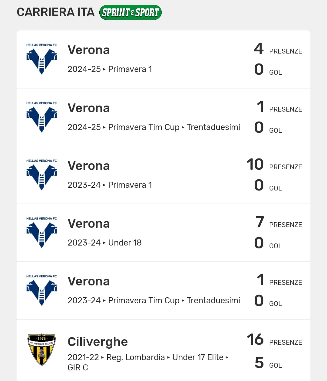 La carriera recente di Marco Fagoni: sulla nostra App tutte le statistiche del Campionato Primavera 1