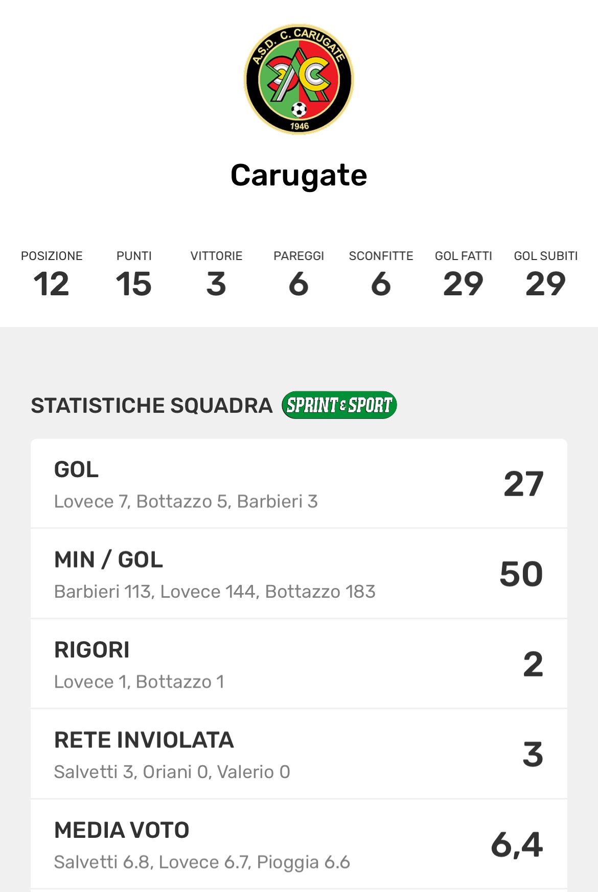 Vuoi vedere le statistiche del Carugate? Clicca sull'immagine e scarica gratuitamente l'app di Sprint!
