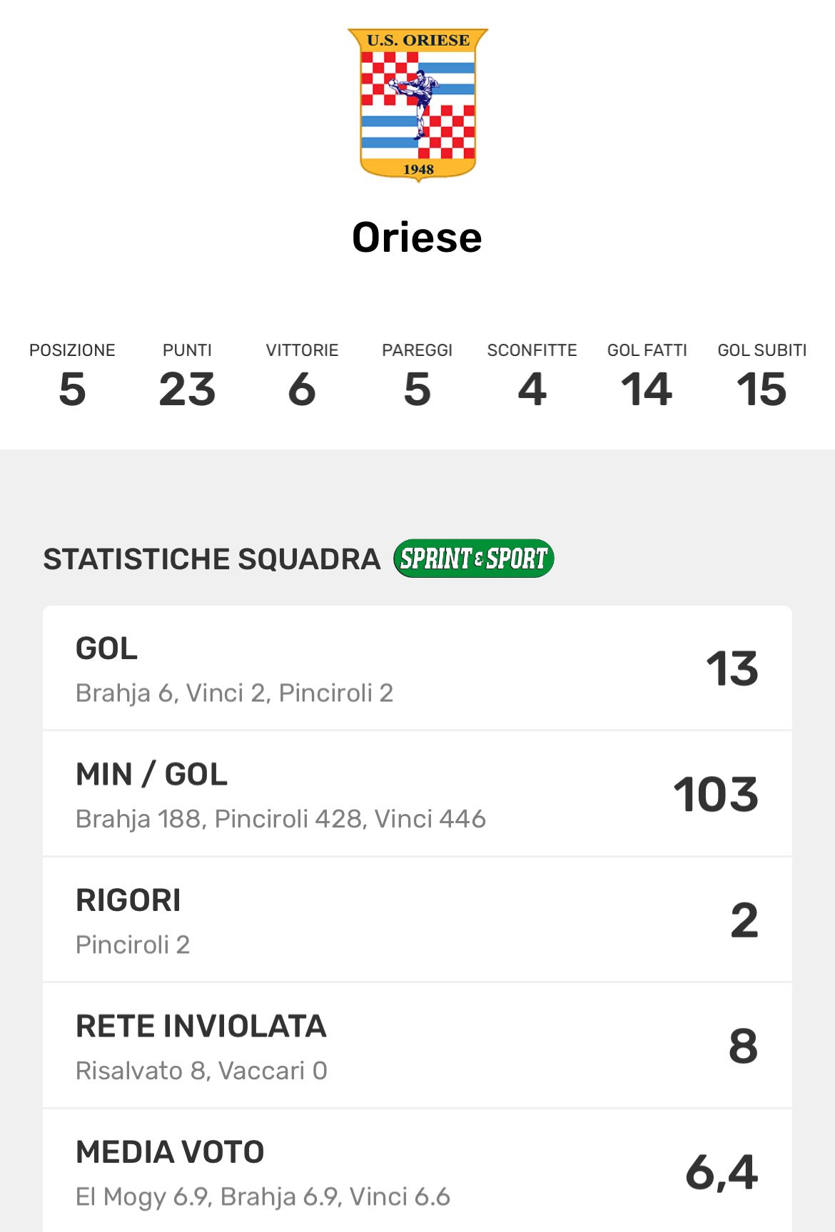 Vuoi vedere le statistiche dell'Oriese? Clicca sull'immagine e scarica gratuitamente l'app di Sprint!
