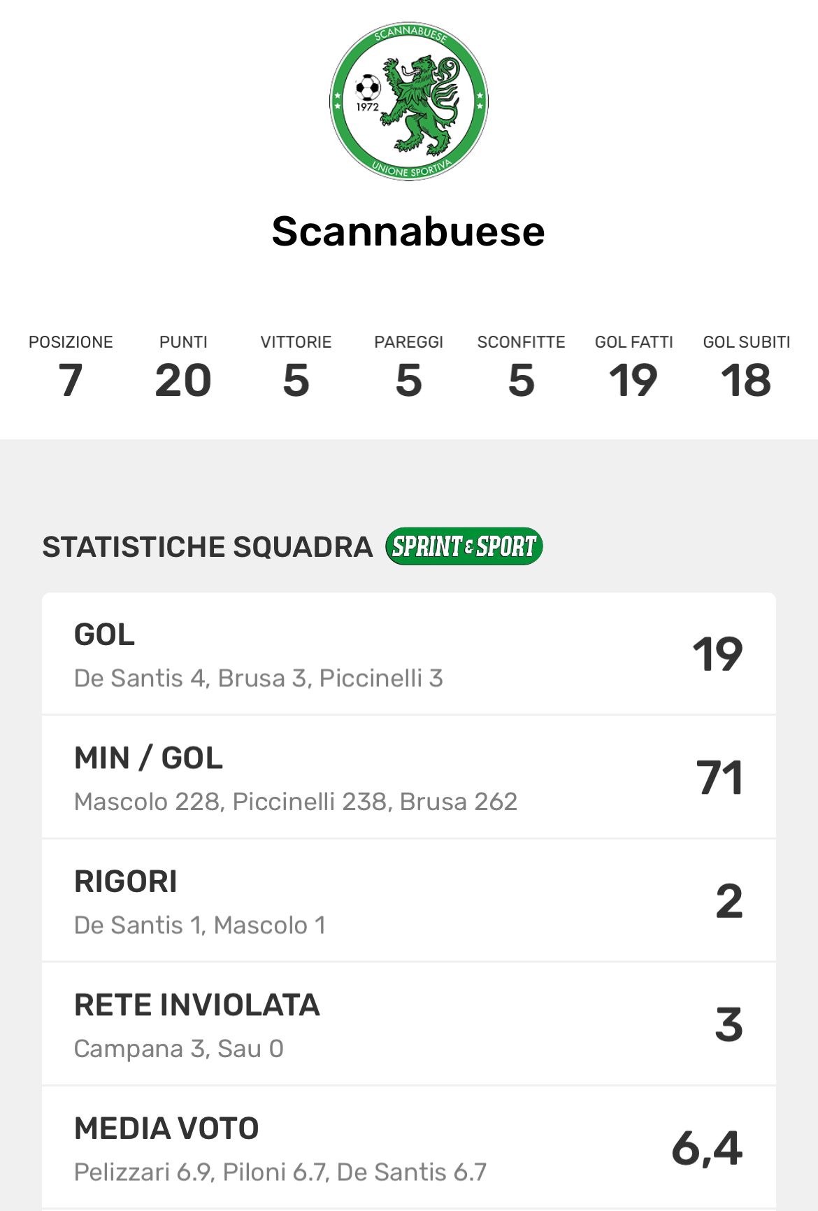 Un 6 che potrebbe sembrare severo per una squadra come la Scannabuese. Ma è proprio perché le aspettative, a inizio stagione, erano altissime. Nonostante ciò, la formazione di Maurizio Lucchetti ha disputato quattro mesi che, al netto dei pronostici, sono tutt’altro che negativi. L’essere fuori dalla zona play-off è un rammarico, certo, ma nulla è ancora perduto. La Scannabuese ha dimostrato di avere le qualità per rientrare nella corsa, e l’ha fatto nel migliore dei modi, chiudendo il girone d’andata con una vittoria di carattere per 2-1 contro l’Oriese. La Scannabuese ha ancora tanto da dire ed è pronta a farlo con due aggiunte preziose: l'attaccante classe 2005 Tommaso Zanotti e il difensore centrale - sempre classe 2005 - Marzagalli.