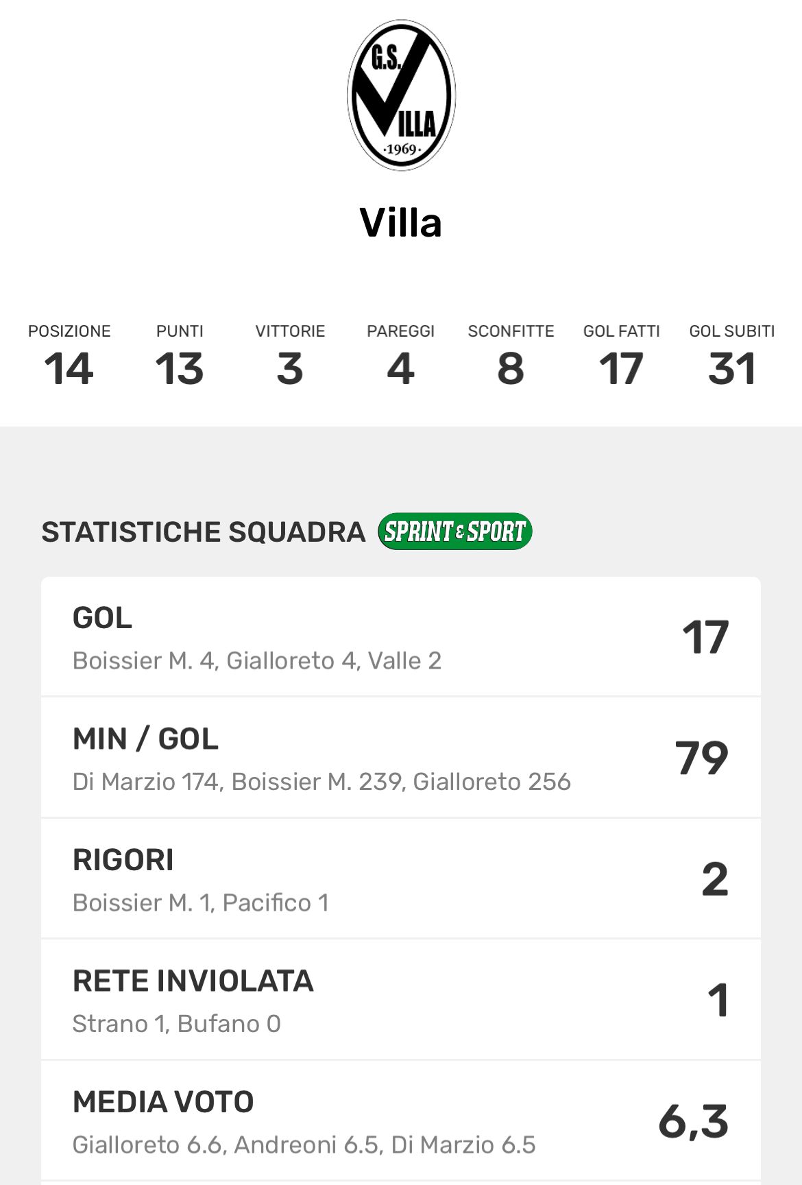 8 sconfitte sono tante. 31 gol subiti pesano. Eppure, fermati un attimo a riflettere: un diciottenne che, di fronte a un trentenne, non si arrende mai, lotta per tutti i 90 minuti, riuscendo anche a contrastarlo. Questo è ciò che ha offerto il Villa nella prima parte di campionato con una rosa giovanissima. Non solo: la squadra di Danilo Minelli è stata l’unica a raggiungere i quarti di Coppa, un traguardo che parla chiaro sul suo potenziale. I risultati non sono stati dalla loro parte, è vero, ma la squadra ha mostrato una mentalità solida e una voglia di migliorarsi che non può passare inosservata.