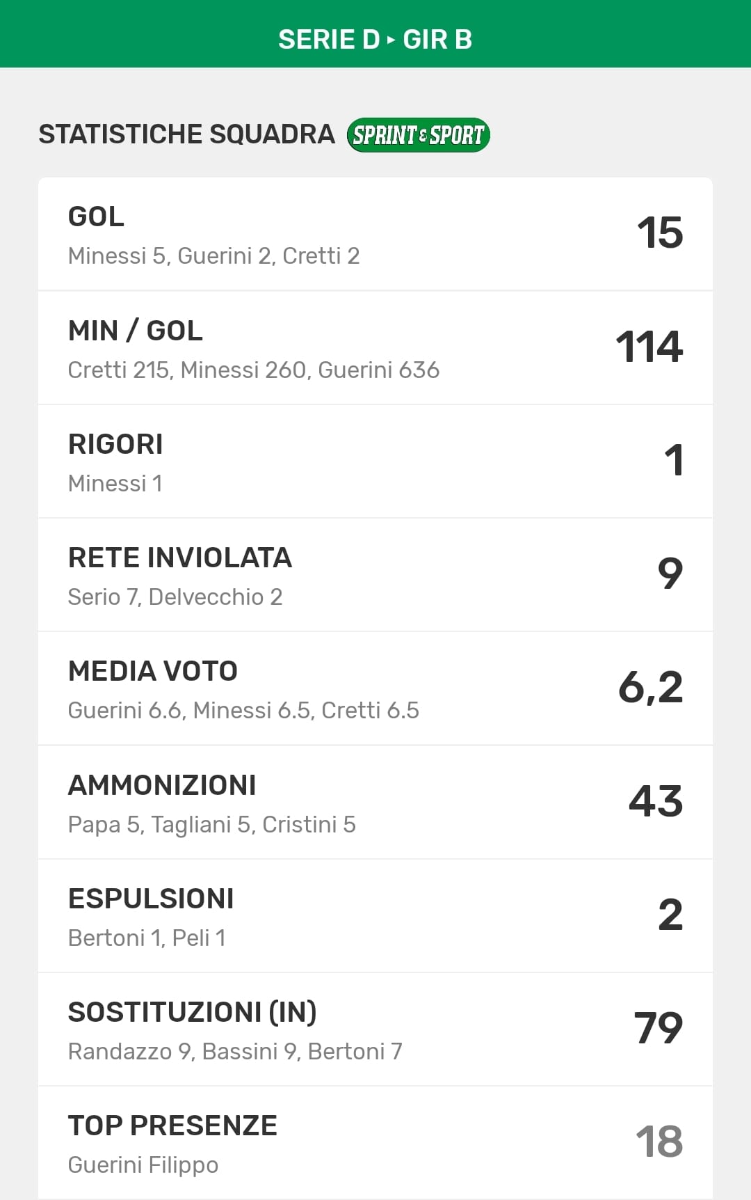 Le statistiche stagionali del Breno: sulla nostra App tutti i numeri della Serie D
