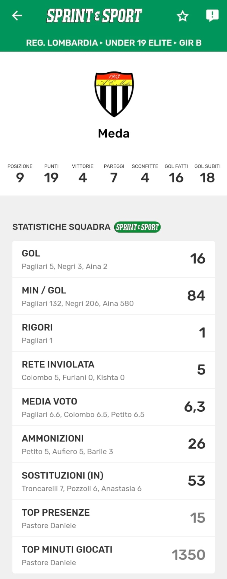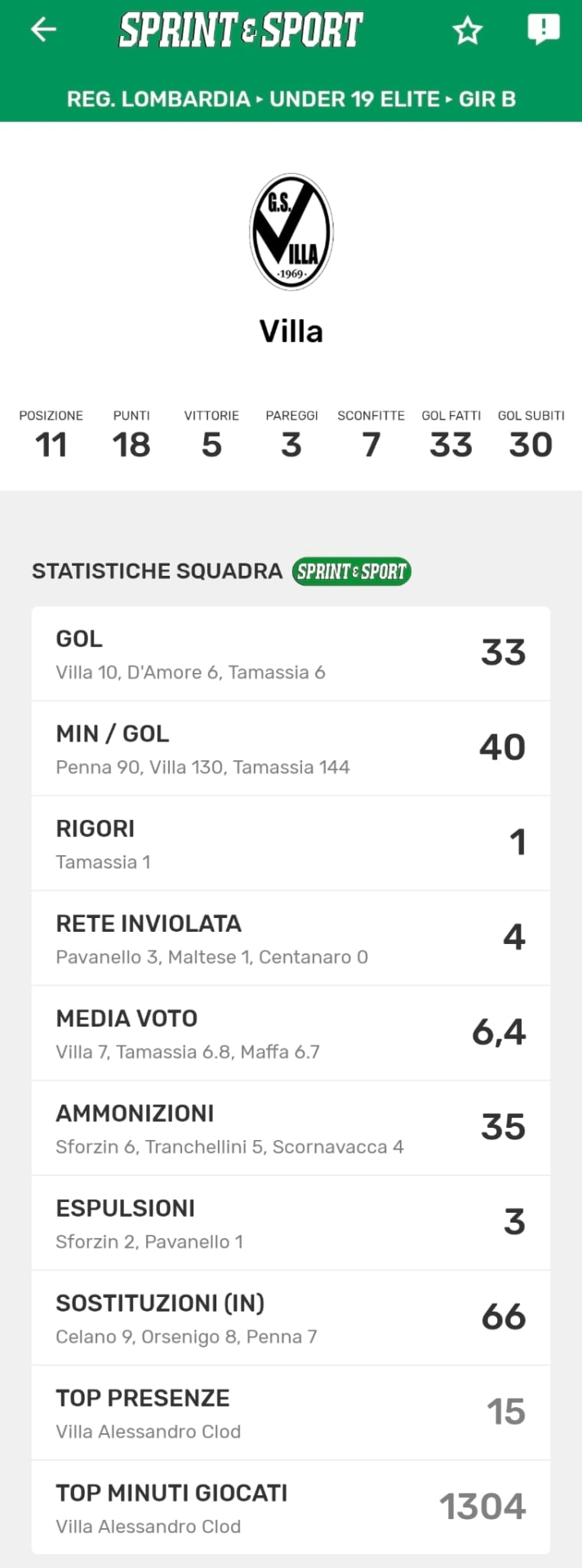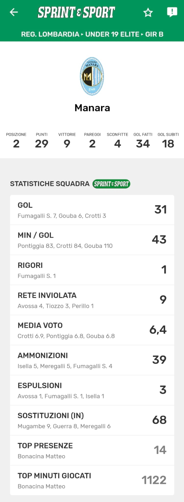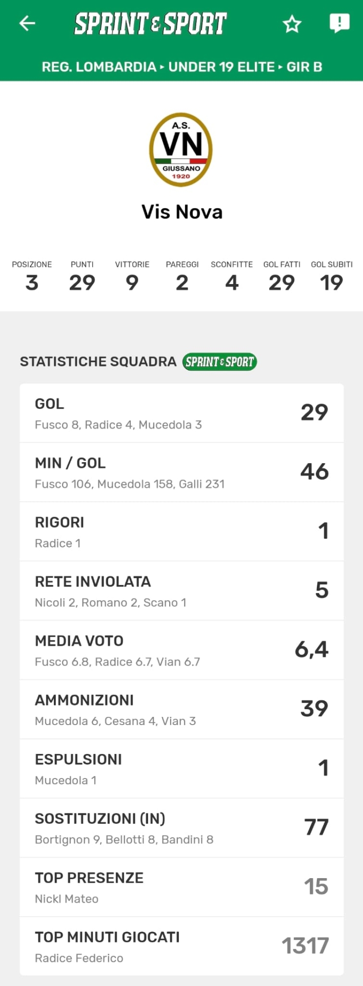 Le statistiche della TUA SQUADRA le trovi SOLO SULL'APP DI SPRINT E SPORT: clicca l'immagine per SCARICARLA!