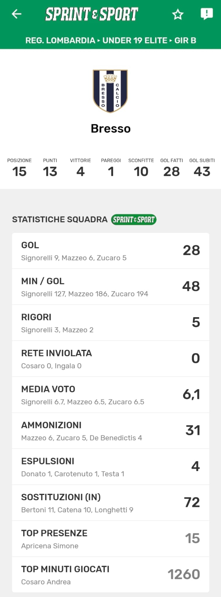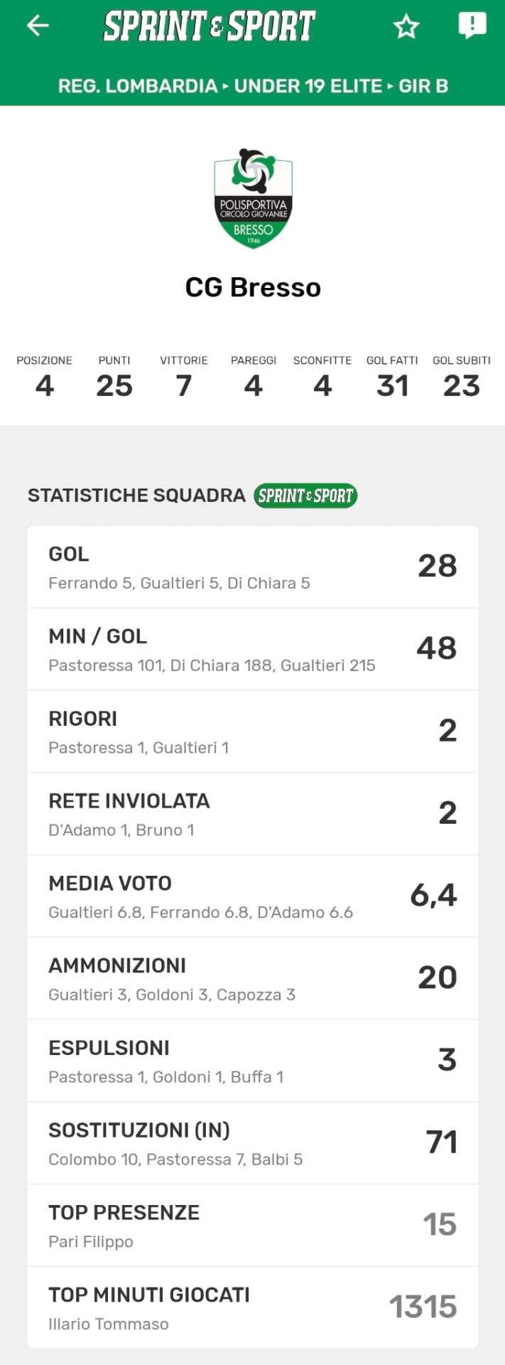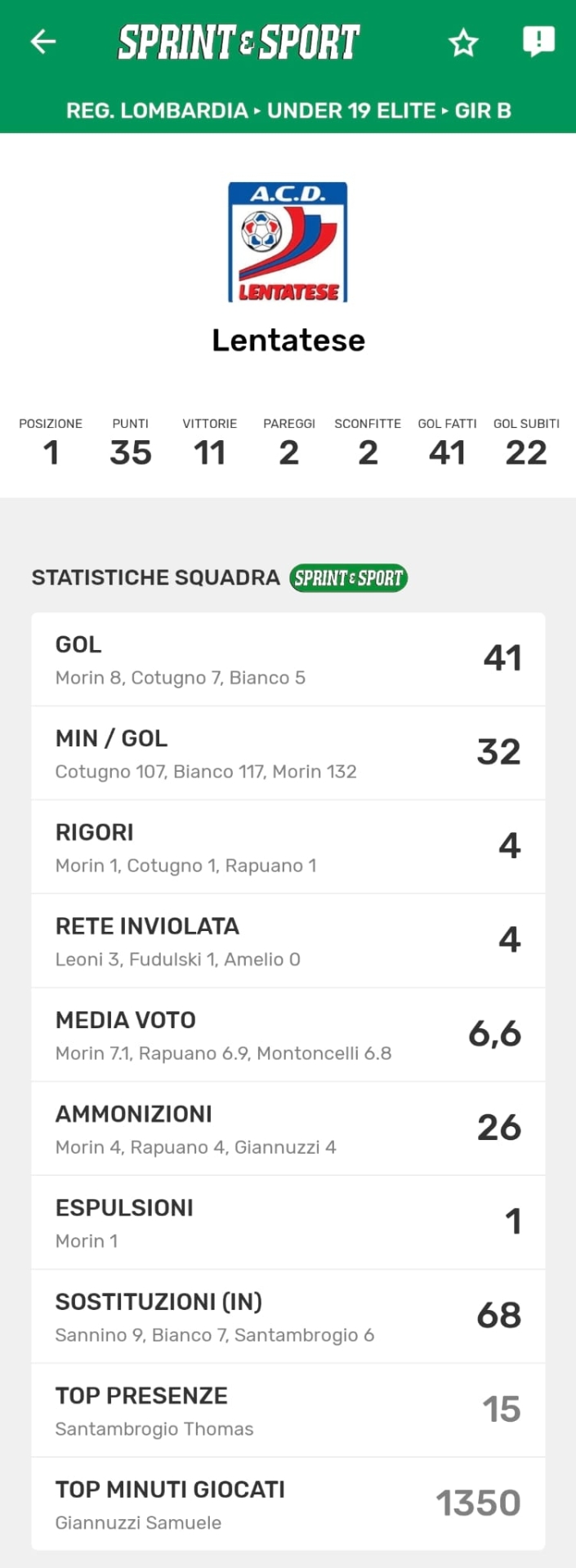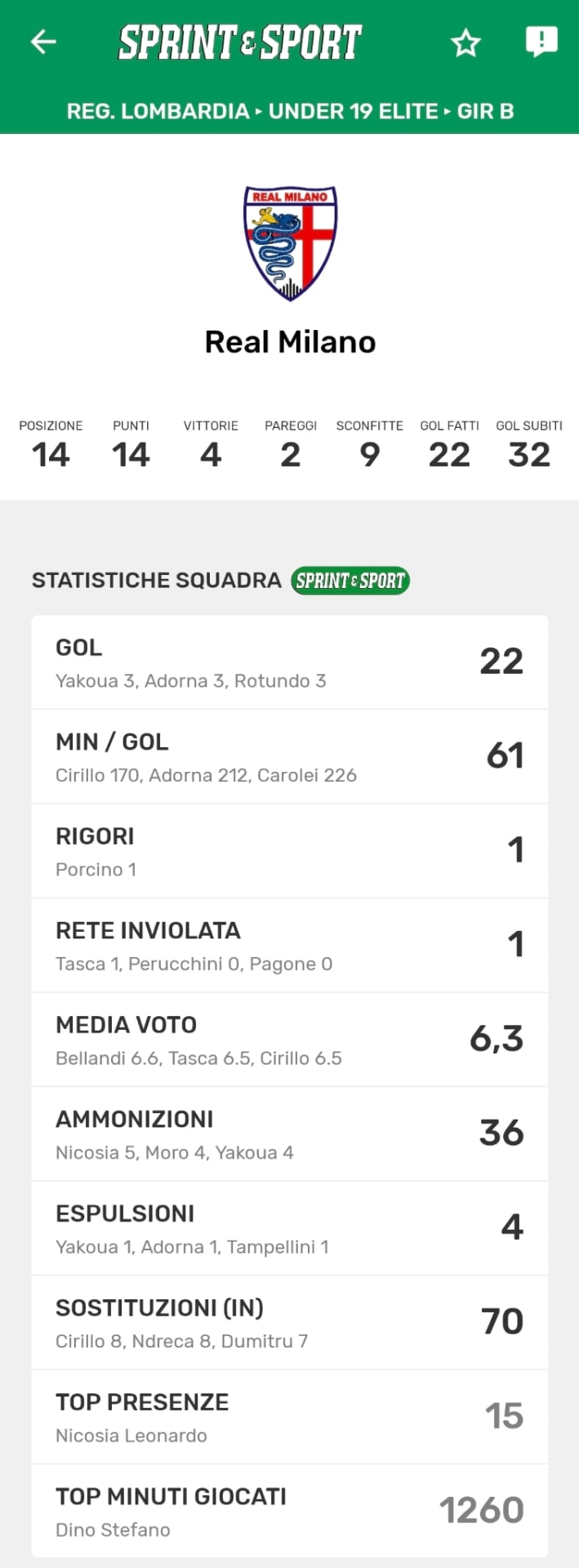Le statistiche della TUA SQUADRA le trovi SOLO SULL'APP DI SPRINT E SPORT: clicca l'immagine per SCARICARLA!