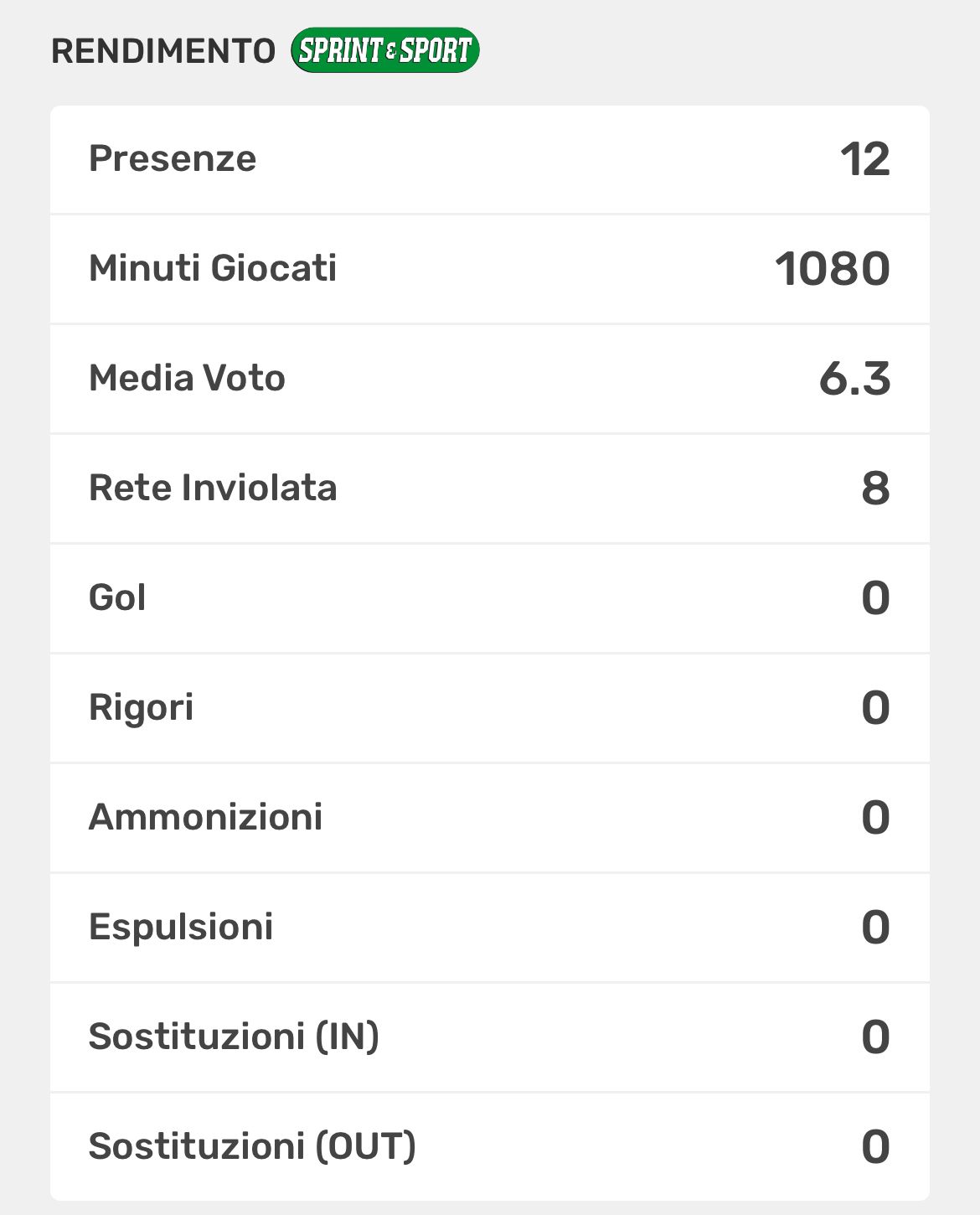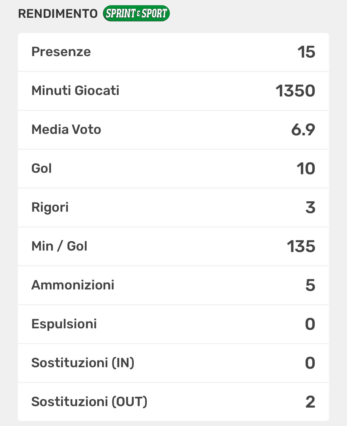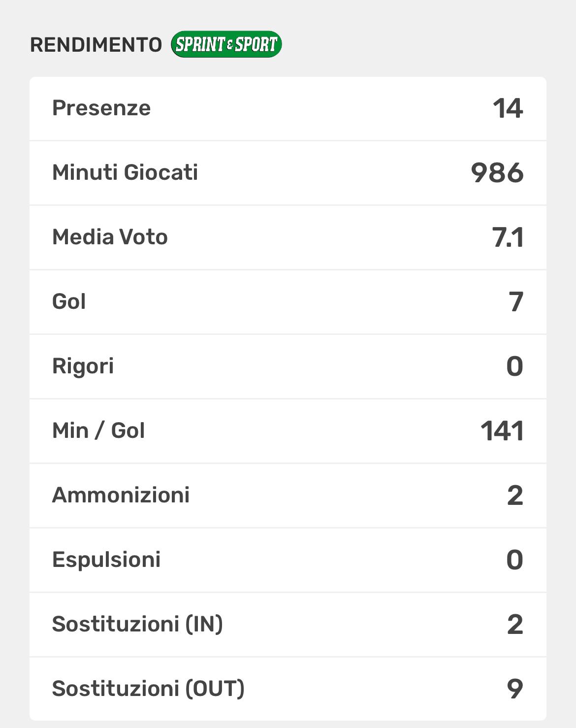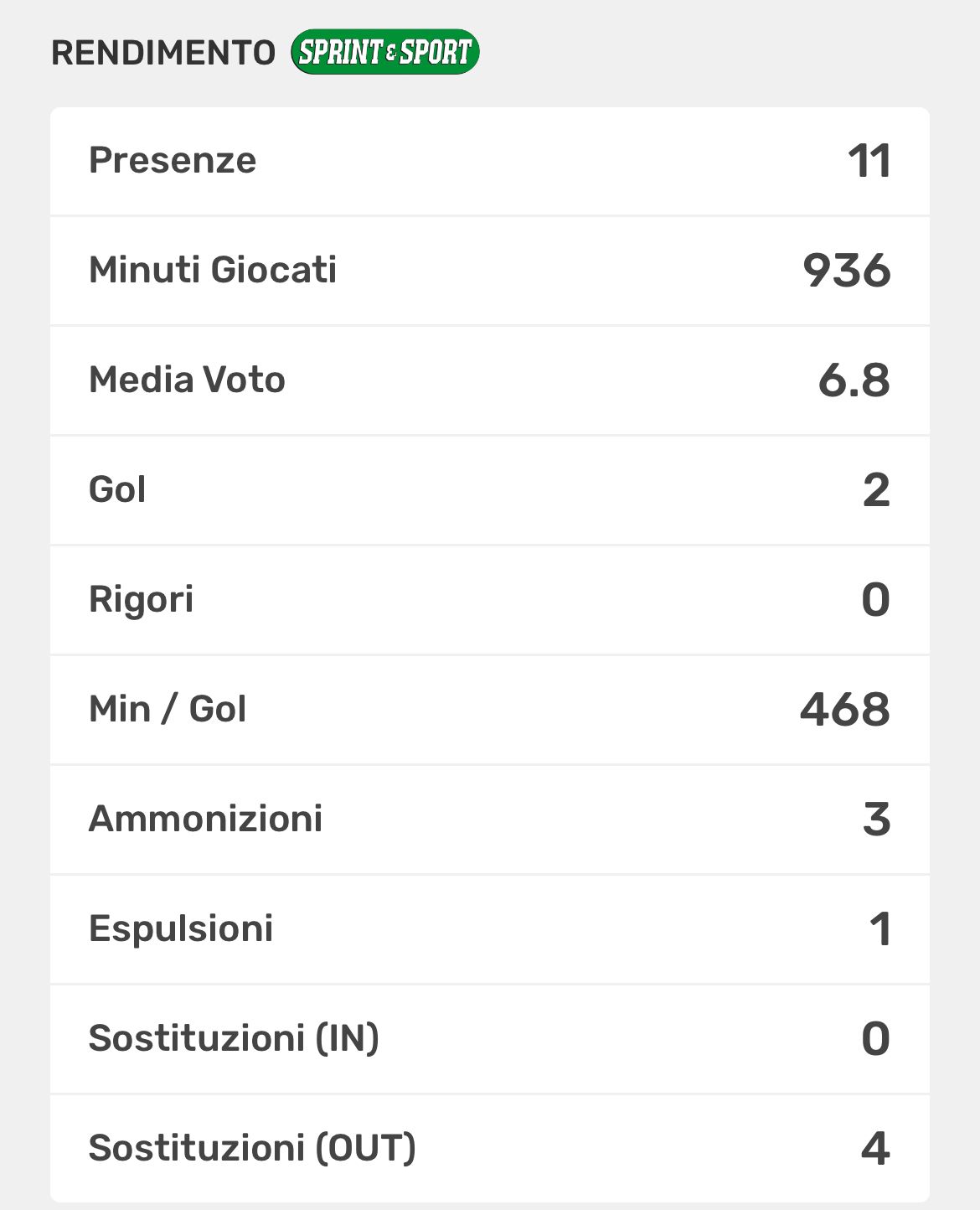 Le statistiche complete di Mezzina, disponibili SOLO sull'app di Sprint e Sport: clicca l'immagine per scaricarla!