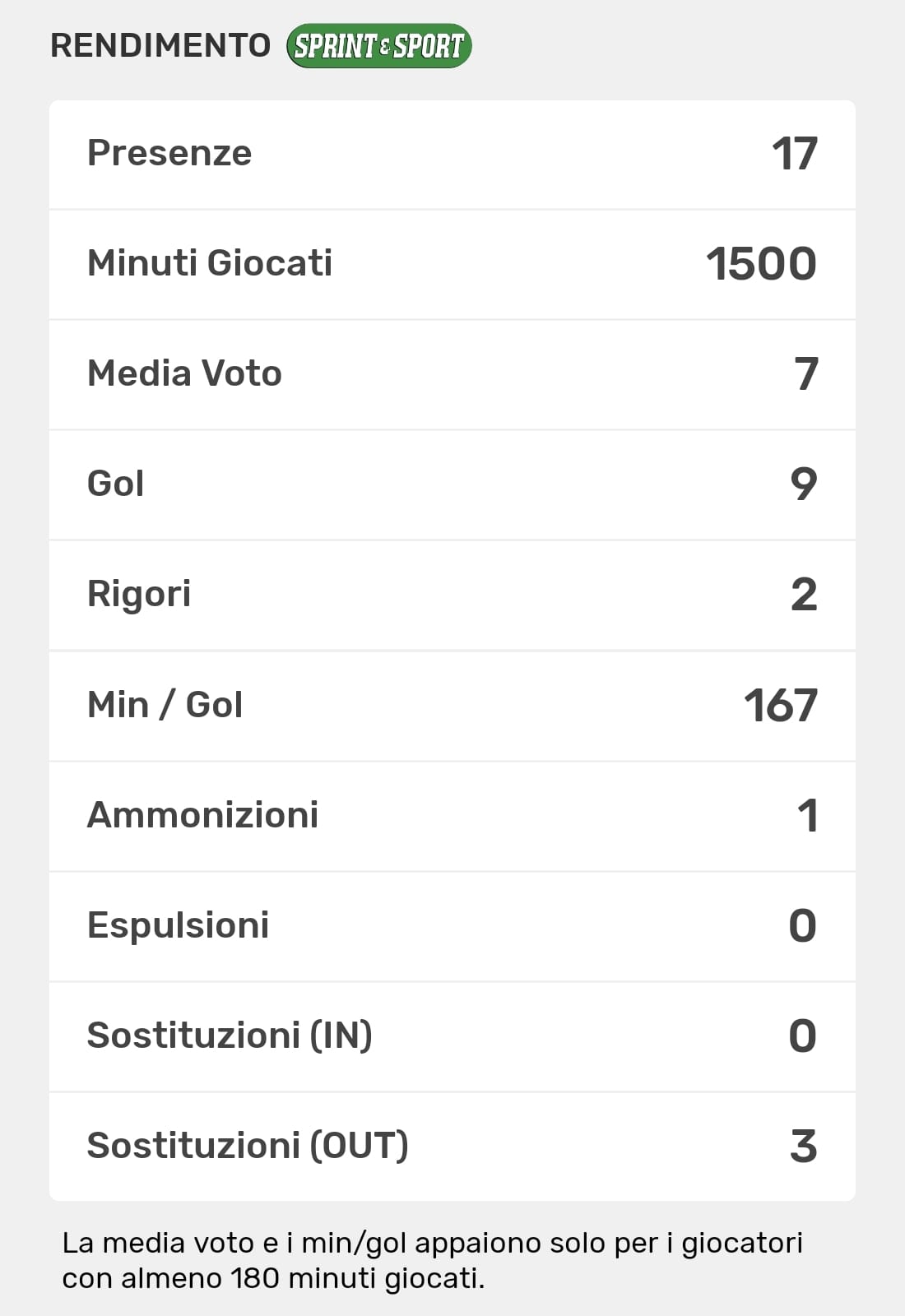 Le TUE statistiche le trovi SOLO SULL'APP DI SPRINT E SPORT: clicca l'immagine per SCARICARLA!