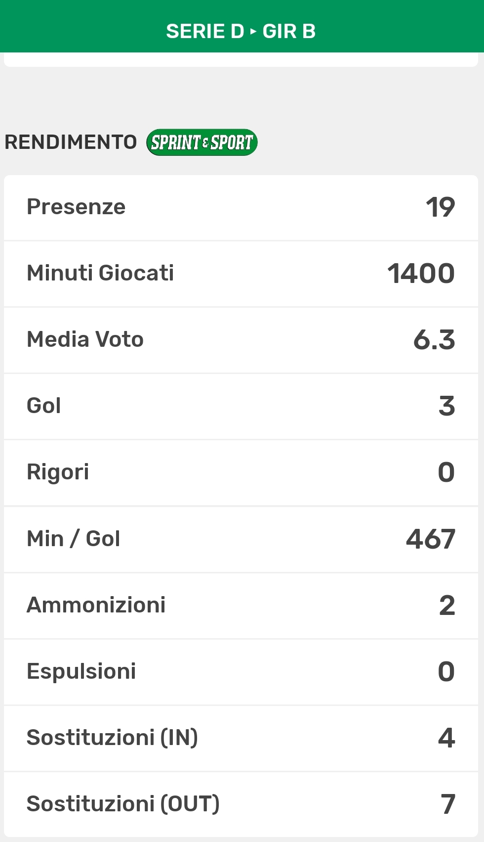 Le statistiche complete di Chillemi, disponibili solo sull'app di Sprint e Sport!