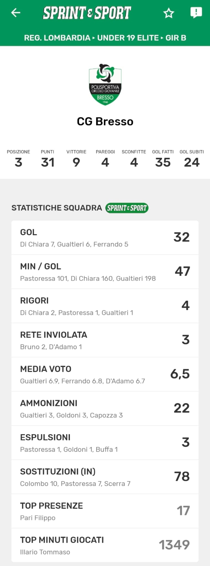 Le statistiche della TUA SQUADRA le trovi SOLO SULL'APP DI SPRINT E SPORT: clicca l'immagine per scaricarla!