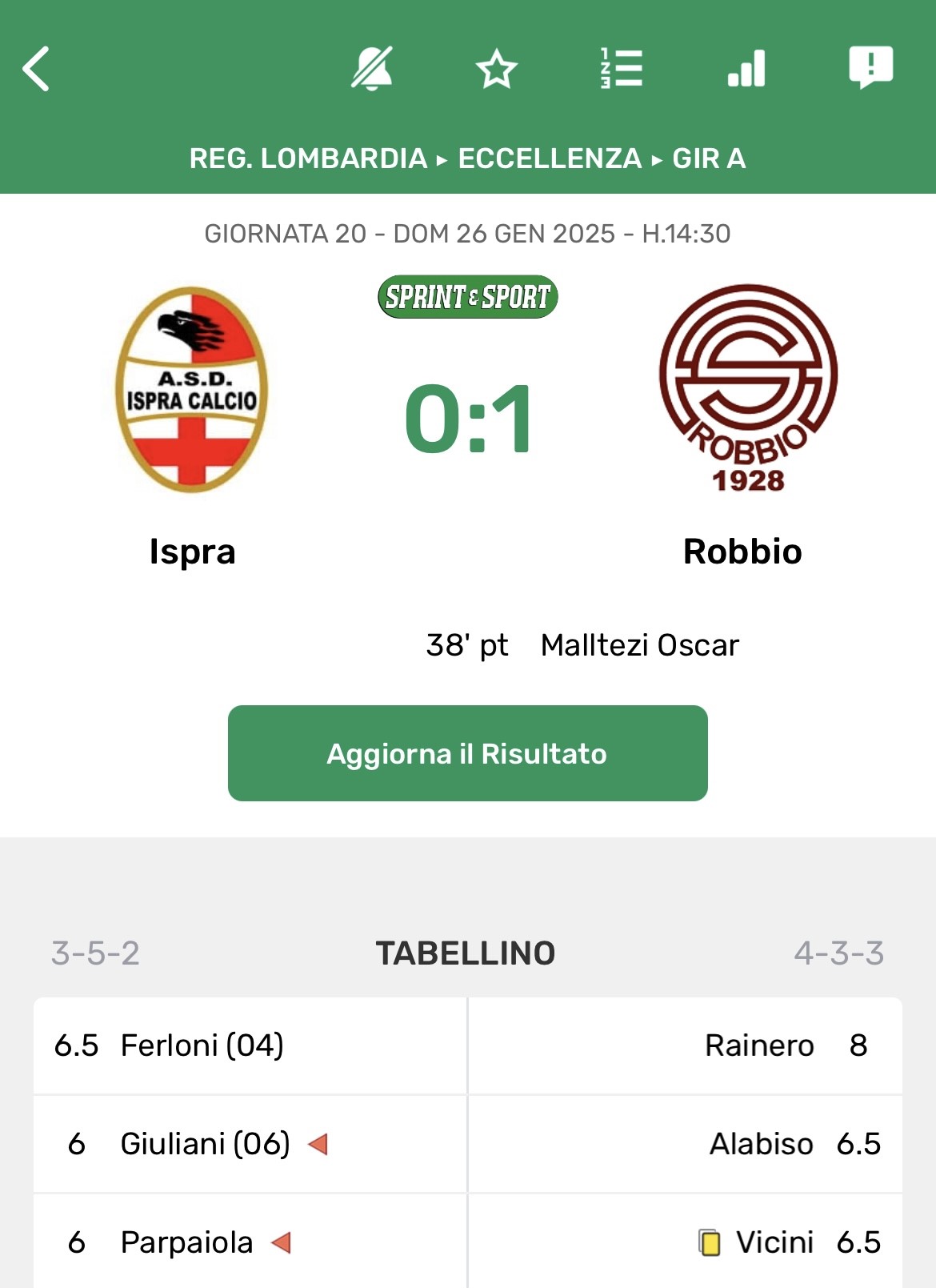 Per il tabellino completo di Ispra-Robbio clicca sull'immagine e scarica l'app di Sprint!
