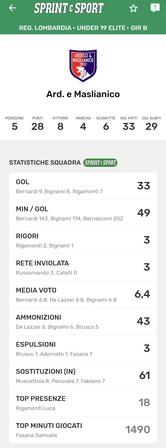 Le statistiche della TUA SQUADRA le trovi SOLO SULL'APP DI SPRINT E SPORT: clicca l'immagine per scaricarla!