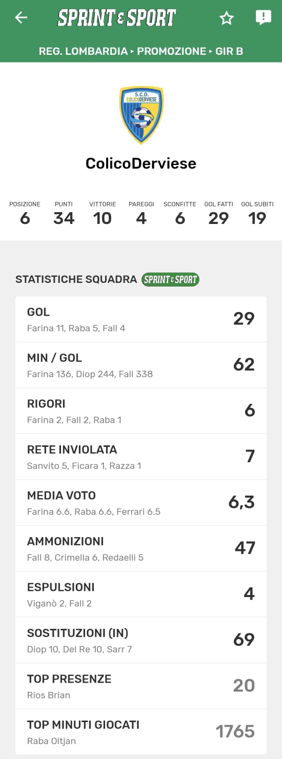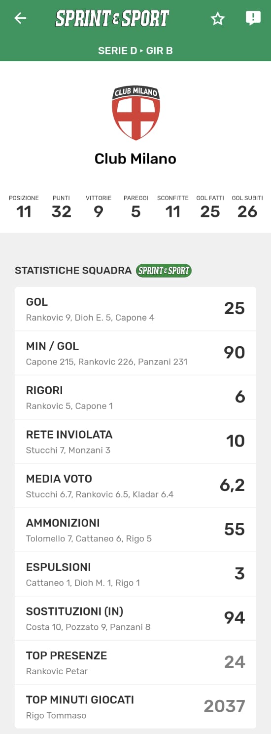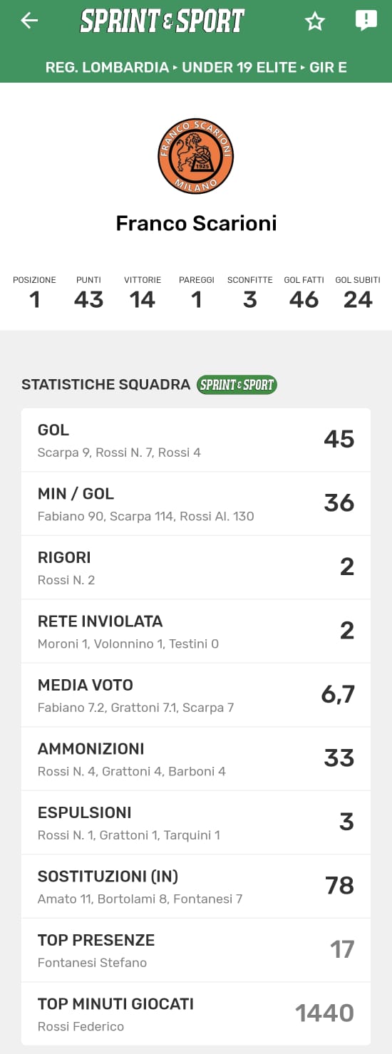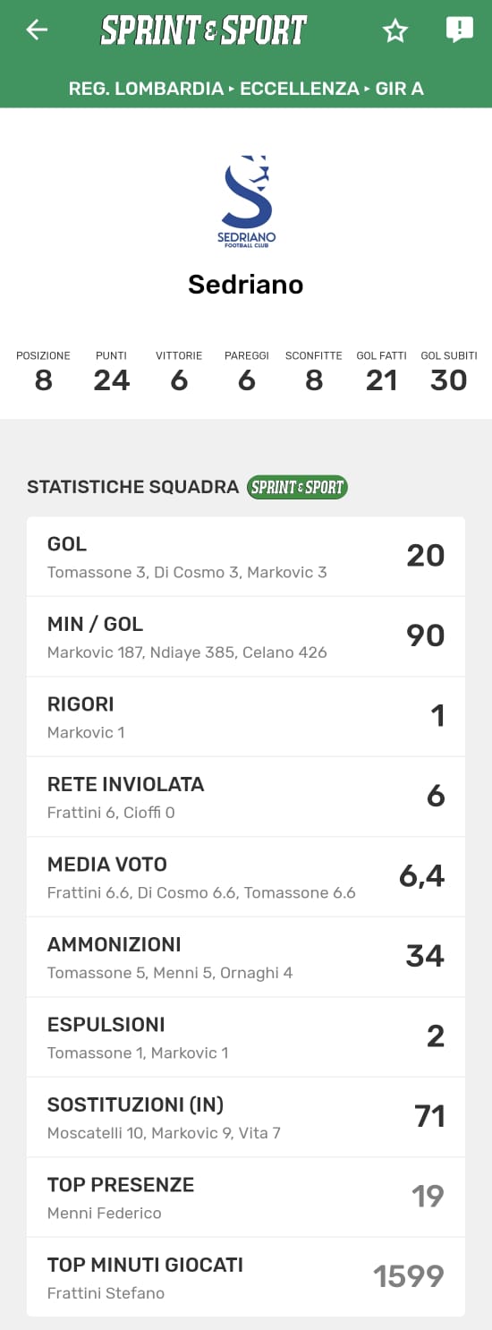 Le statistiche della TUA SQUADRA le trovi SOLO SULL'APP DI SPRINT E SPORT: clicca l'immagine per scaricarla!