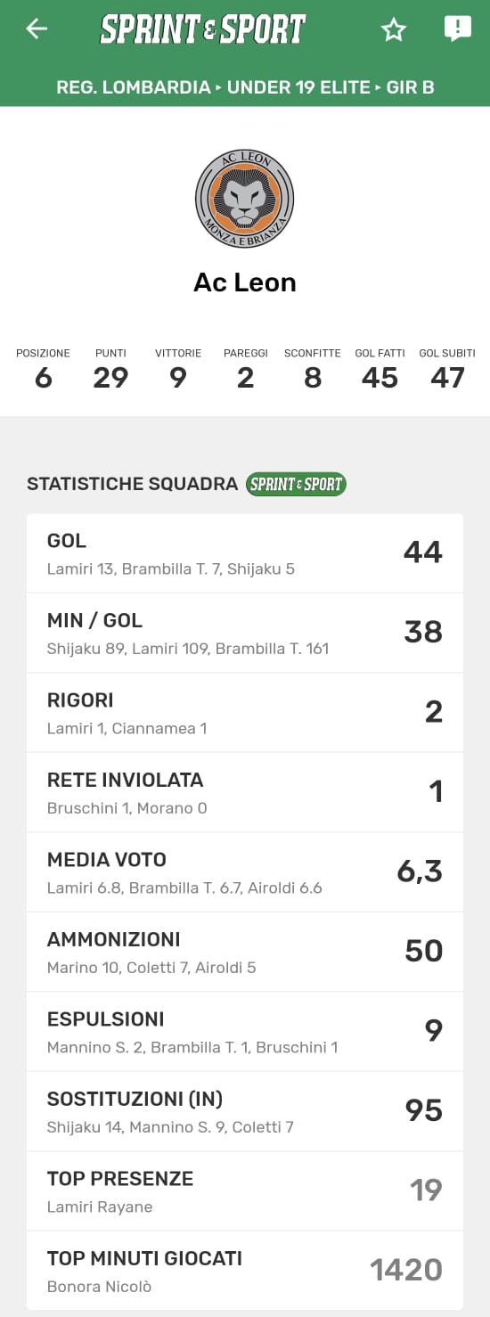 Le statistiche della TUA SQUADRA le trovi SOLO SULL'APP DI SPRINT E SPORT: clicca l'immagine per scaricarla!