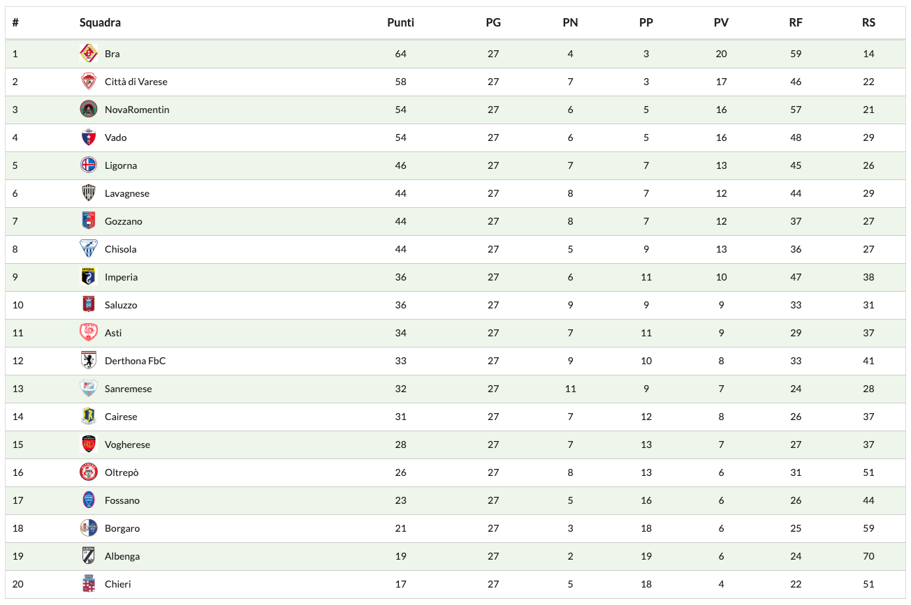 Sarà una 28ª giornata importante, delicata e forse, per qualcuno, decisiva. Dopo lo scossone in vetta del turno precedente nuovo capitolo della serie che porterà in Serie C, col Bra che vorrà riprendere la marcia per tenere a distanza il Città di Varese mentre in coda scontri incrociati delicatissimi e possibili risposte che potrebbero essere sentenze per qualcuno.