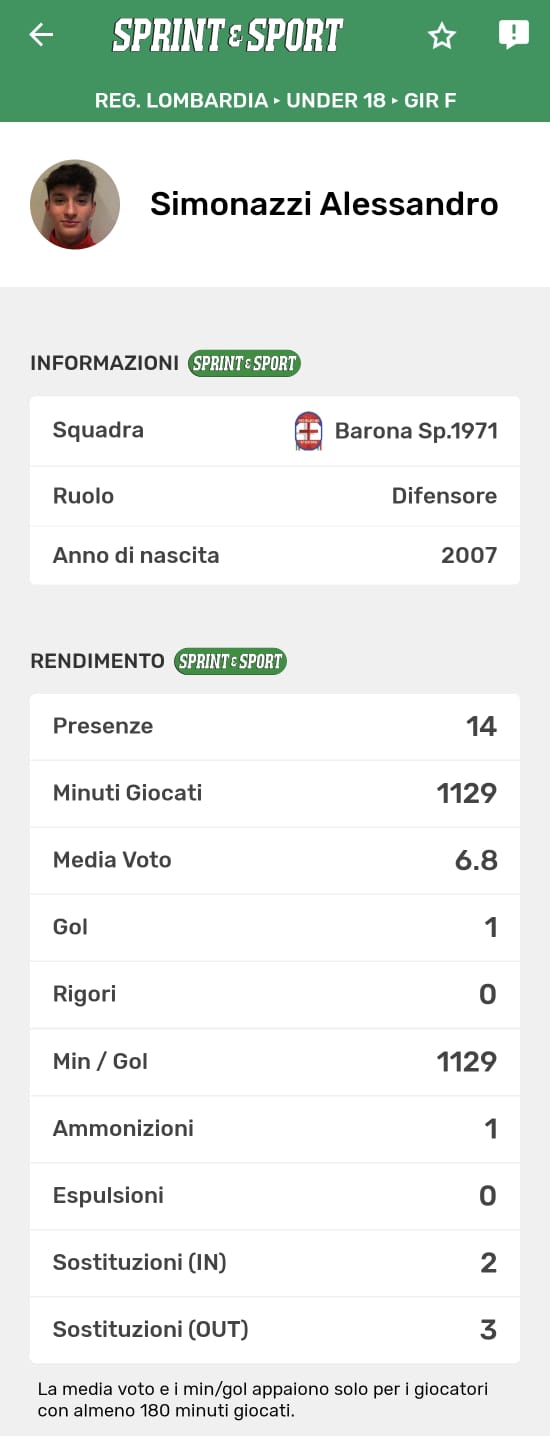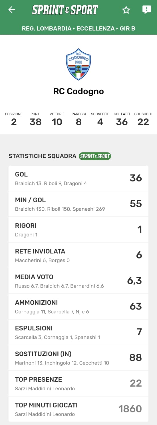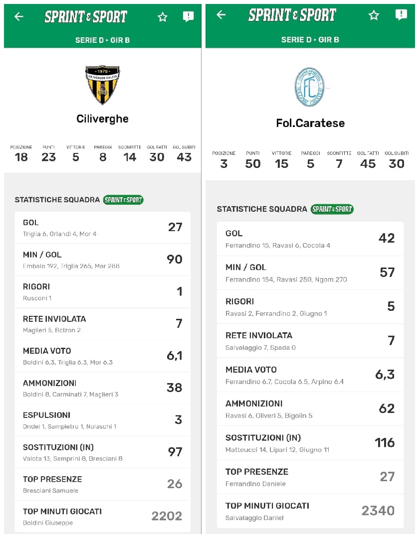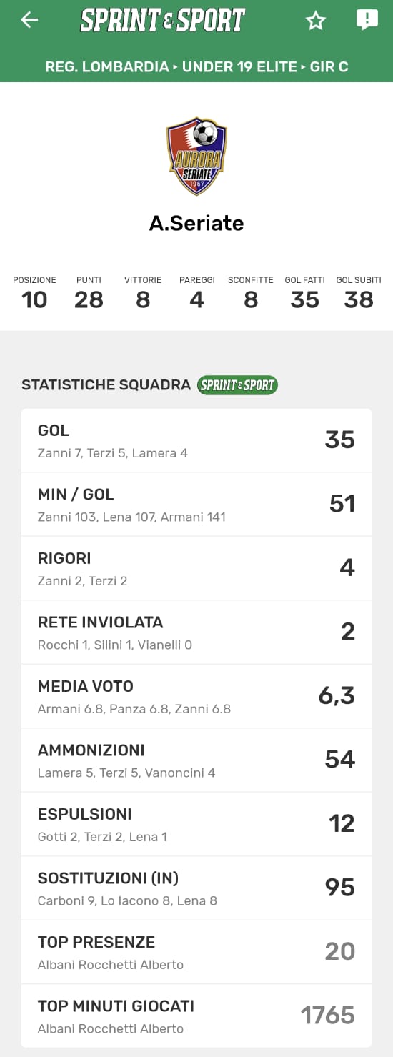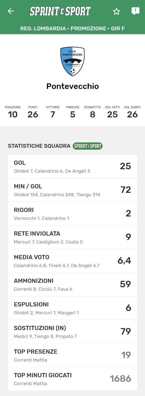 Le statistiche della TUA SQUADRA le trovi SOLO SULL'APP DI SPRINT E SPORT: clicca l'immagine per scaricarla!