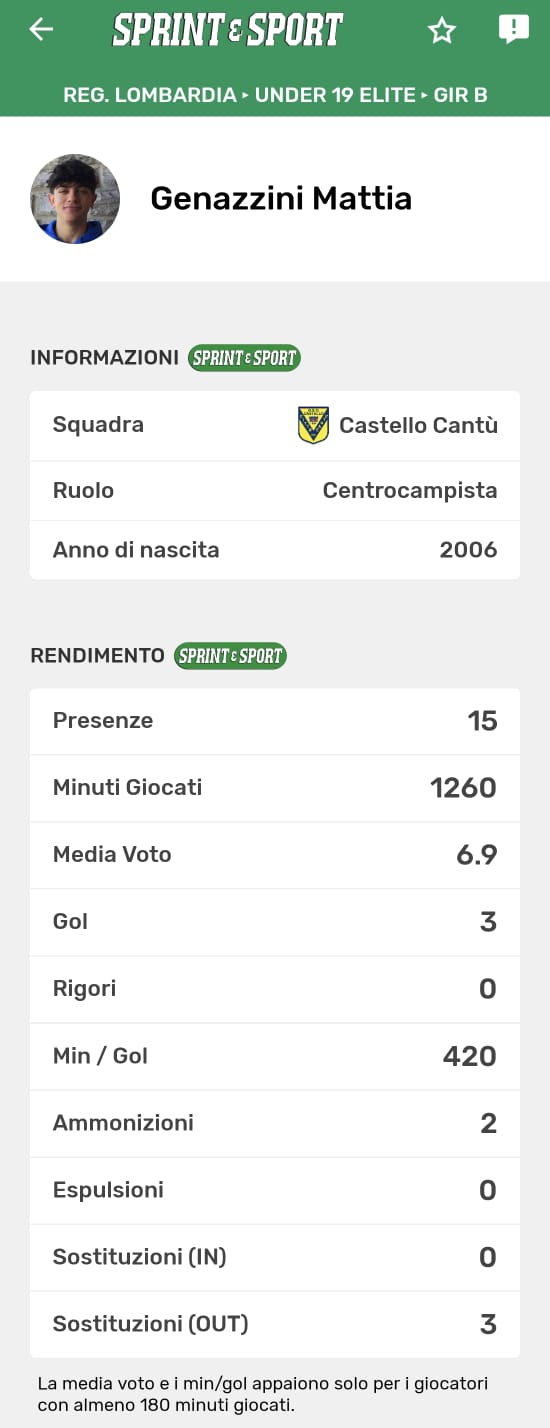 Le TUE statistiche le trovi SOLO SULL'APP DI SPRINT E SPORT: clicca l'immagine per SCARICARLA!
