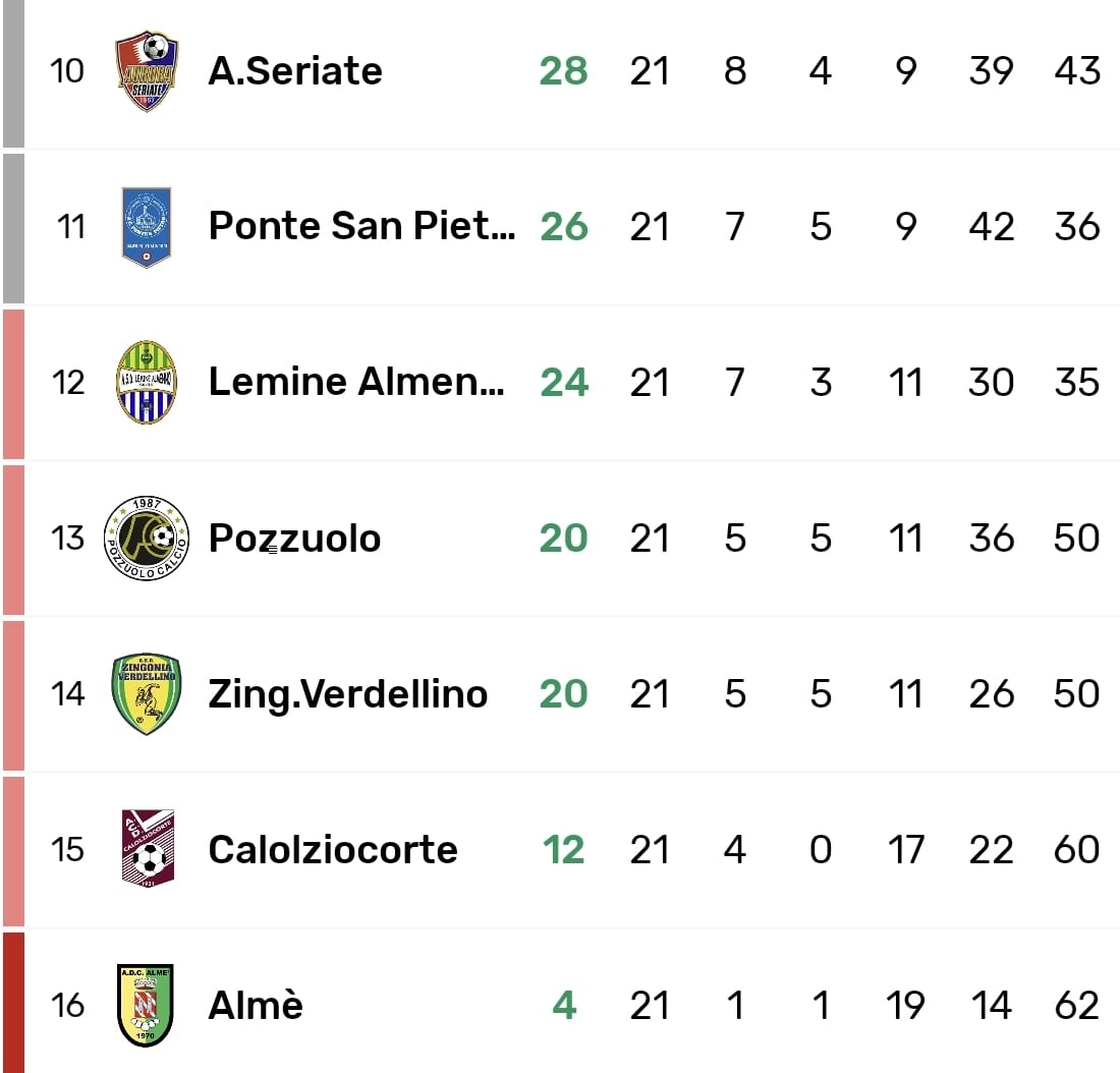 A partire dalla zona playout, elettrizzata dal 5-0 con cui il Lemine Almenno rinvigorisce la sua posizione di conduttore andando a -2 dalla salvezza. Un successo firmato da Pizzagalli, Noah Rota (doppietta), Galletti e Pellegrini, che stendono un Città di Albino improvvisamente in crisi: tre sconfitte di fila e 12 reti subite, tutte dopo aver perso bomber Gallizioli. «La miglior partita? È stata pressoché perfetta, forse la meno sofferta di tutte, di sicuro tra le migliori insieme a quelle con Cisanese e Ponte San Pietro», le parole di Cristian Rota, che mette pressione proprio ai blues, vicini alla rimonta in casa dell'Ars Rovagnate.