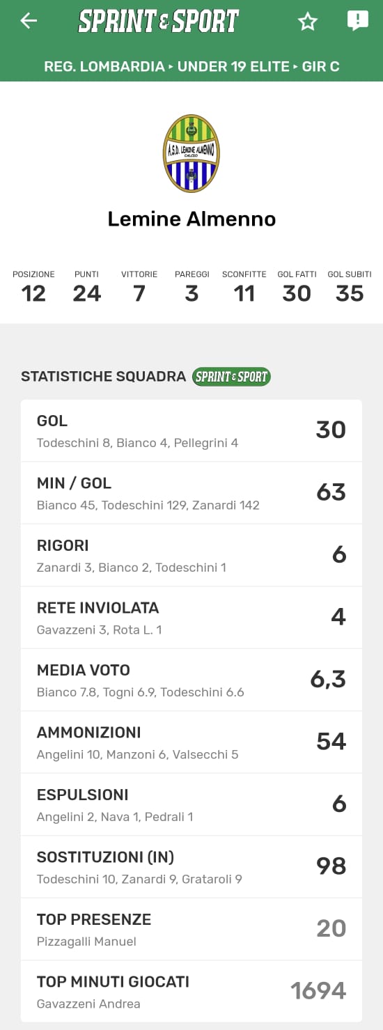 Le statistiche della TUA SQUADRA le trovi SOLO SULL'APP DI SPRINT E SPORT: clicca l'immagine per scaricarla!