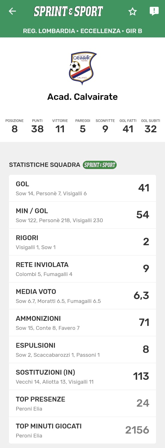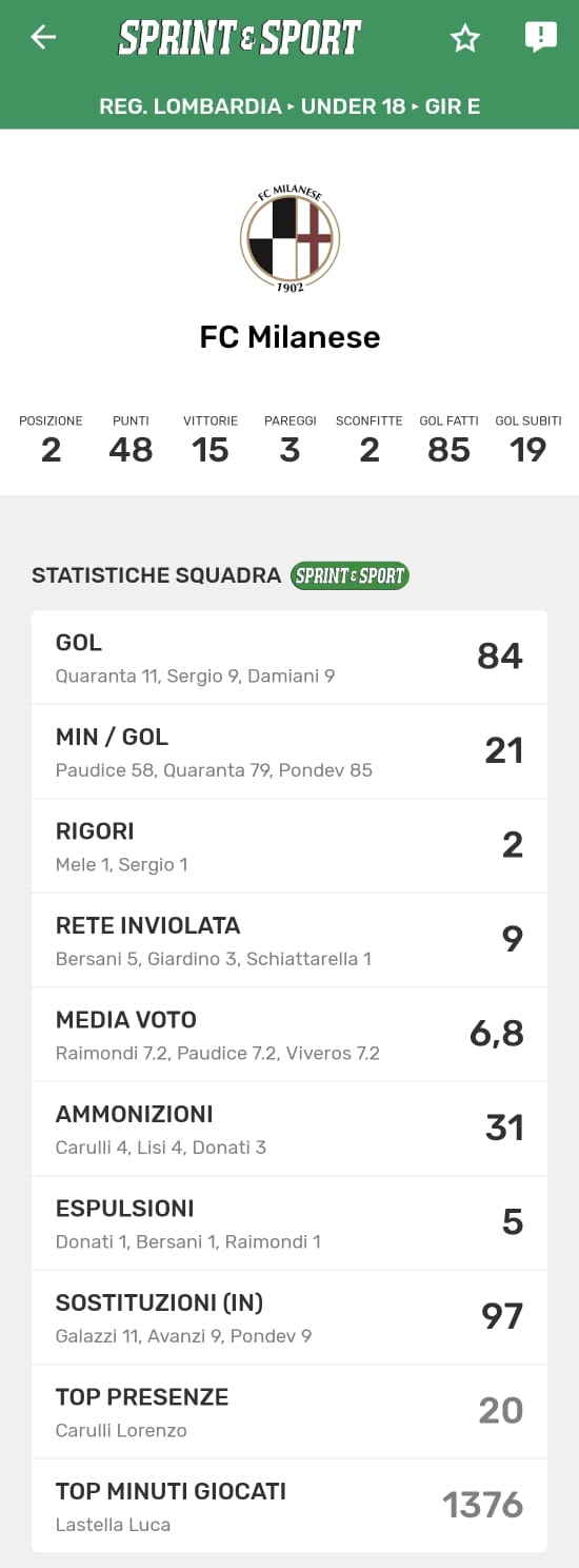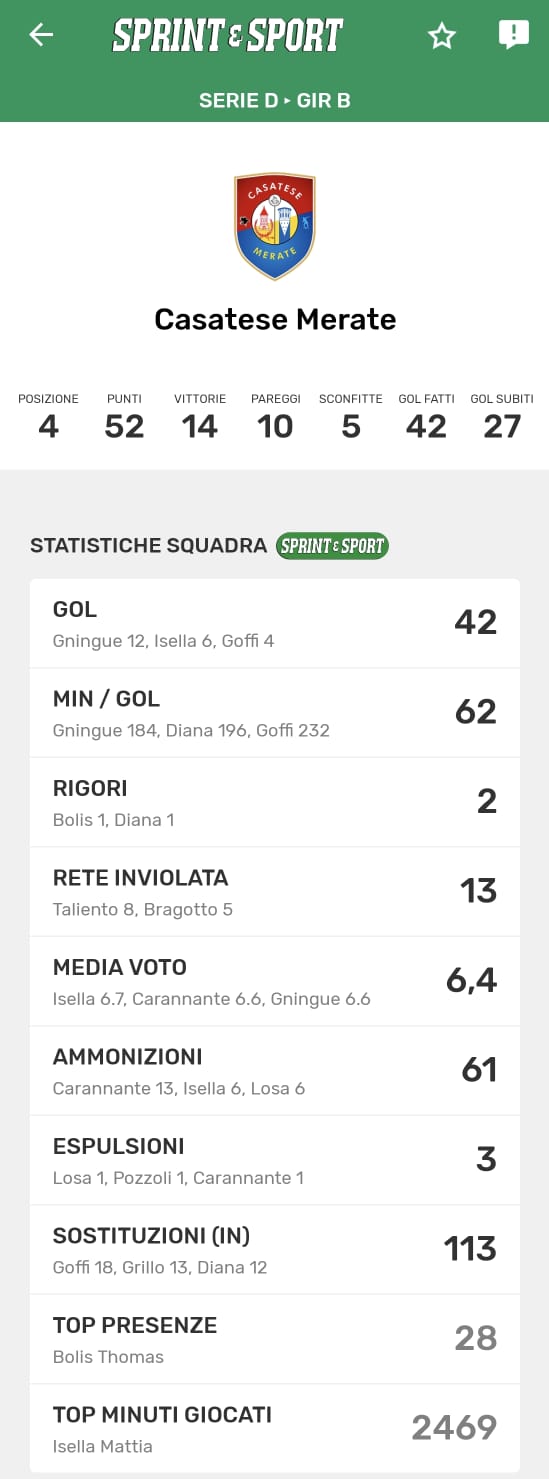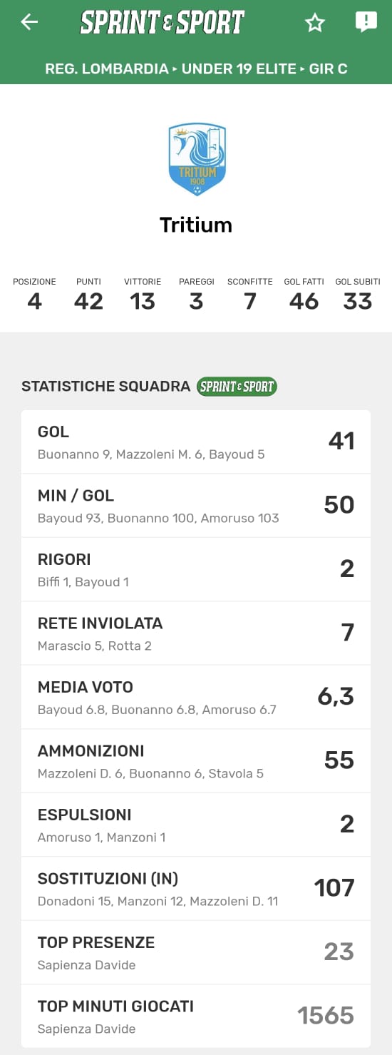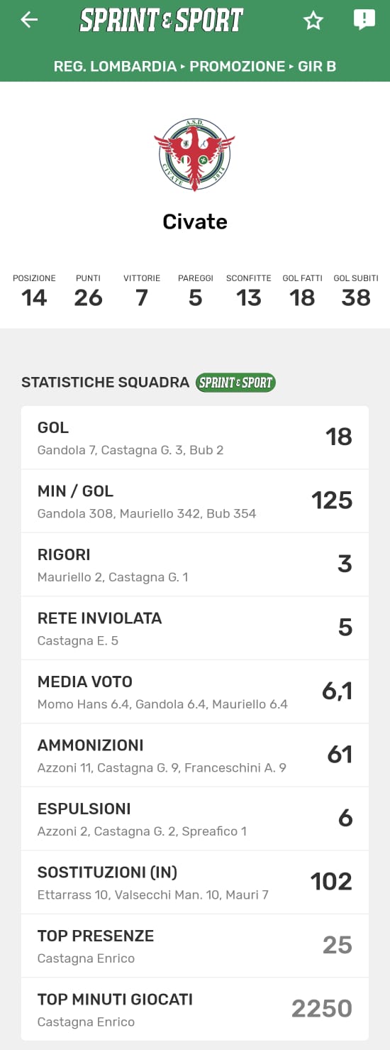 Le statistiche della TUA SQUADRA le trovi SOLO SULL'APP DI SPRINT E SPORT: clicca l'immagine per scaricarla!