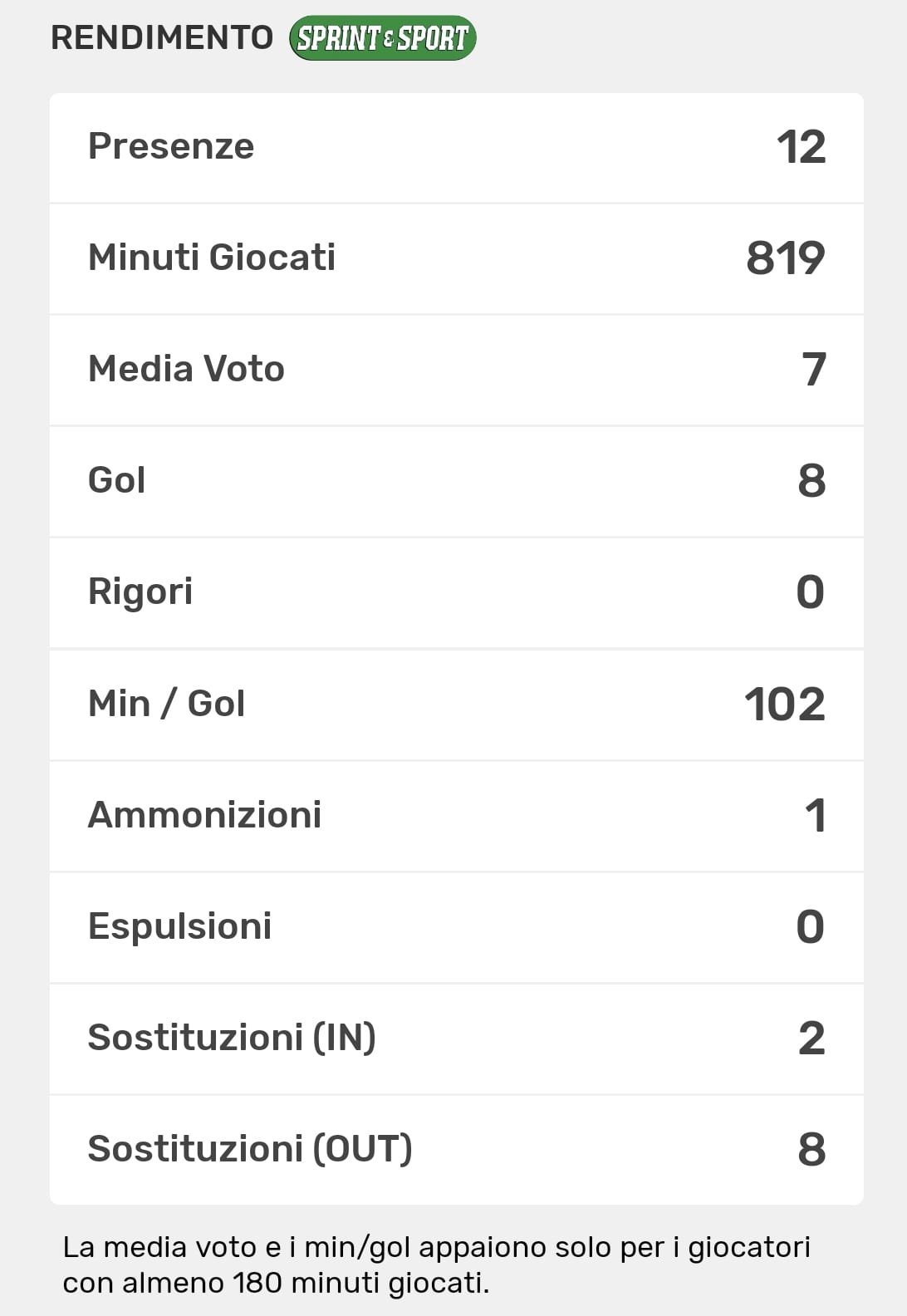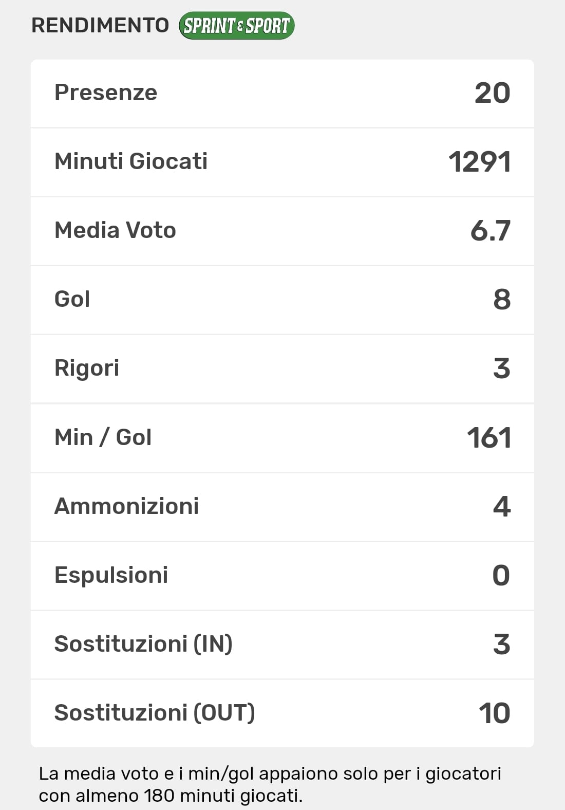 Le TUE statistiche le trovi SOLO SULL'APP DI SPRINT E SPORT: clicca l'immagine per SCARICARLA!