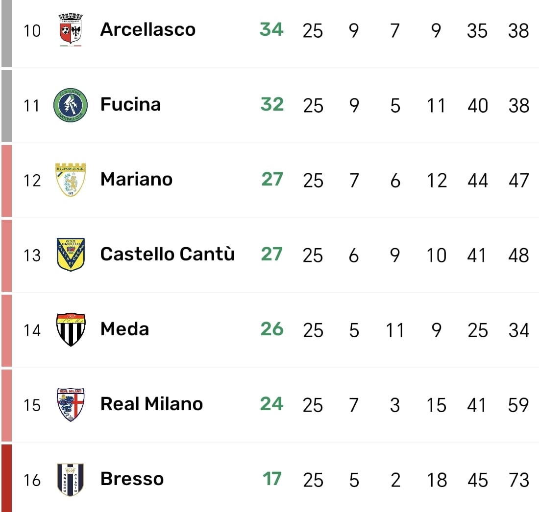 Una fuga verso la salvezza quella dell'Arcellasco che continua nella sfida tutta comasca con l'Ardisci e Maslianico, per provare a sfruttare lo scontro diretto alle proprie spalle, ovvero il delicatissimo Castello Cantù-Real Milano in piena zona playout. Lì, dove il Mariano e Meda si preparano invece a sfide sulla carta più toste, ovvero quelle contro Leon e Manara.