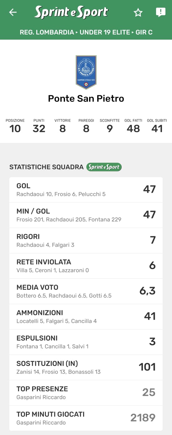 Le statistiche della TUA SQUADRA le trovi SOLO SULL'APP DI SPRINT E SPORT: clicca l'immagine per scaricarla!