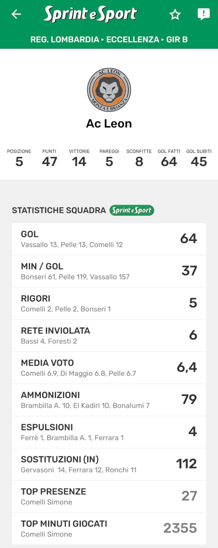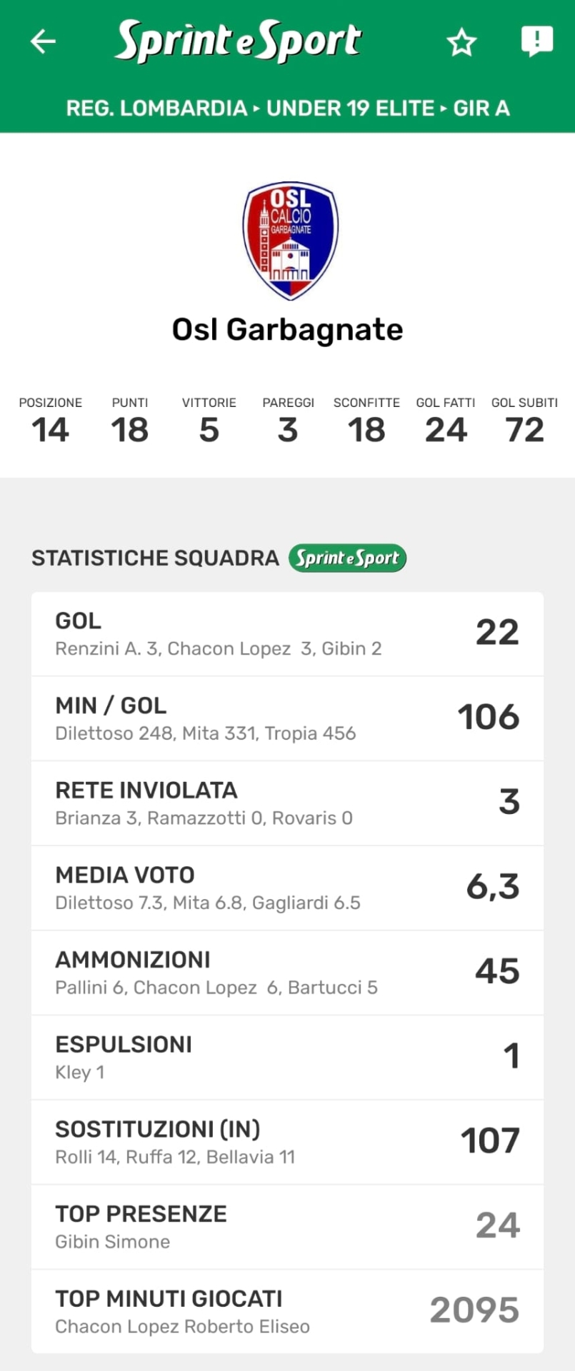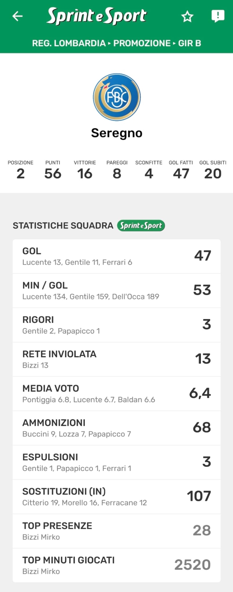 Le statistiche della TUA SQUADRA le trovi SOLO SULL'APP DI SPRINT E SPORT: clicca l'immagine per scaricarla!