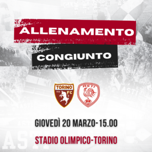 Appuntamento per giovedì 20 marzo, alle ore 15.00, per i ragazzi del tecnico Vanoli che affronteranno l’A.S.D. Asti in allenamento congiunto. L’allenamento si svolgerà a porte aperte allo stadio Olimpico Grande Torino e i tifosi potranno assistere alla sessione pomeridiana accedendo liberamente nel settore Distinti a partire dalle ore 14.30.