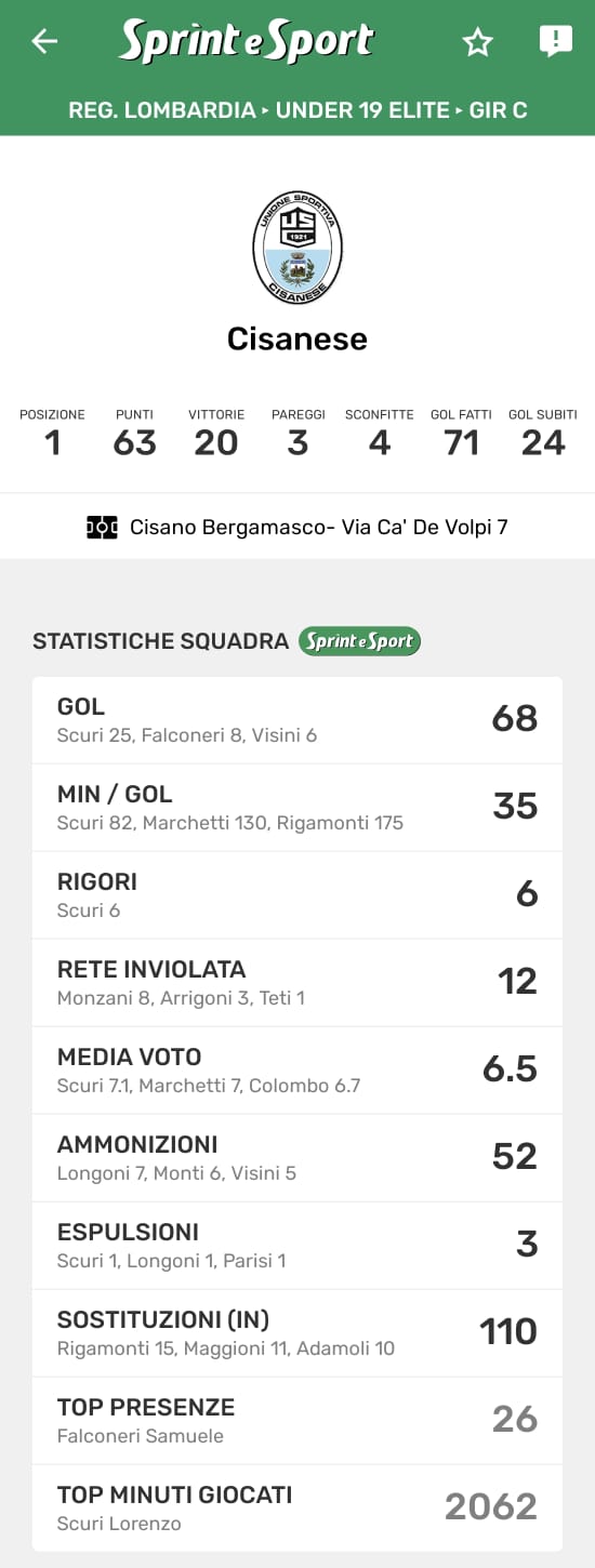 UNDER 19 ÉLITE CISANESE • Giovanni Adamoli