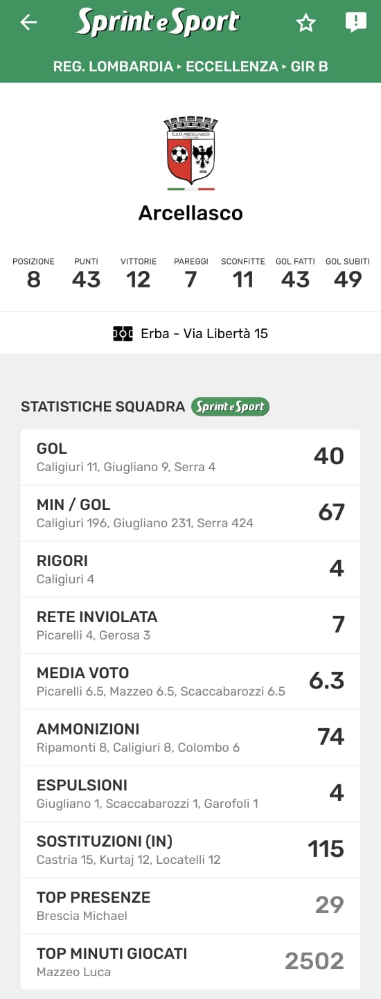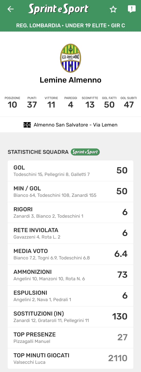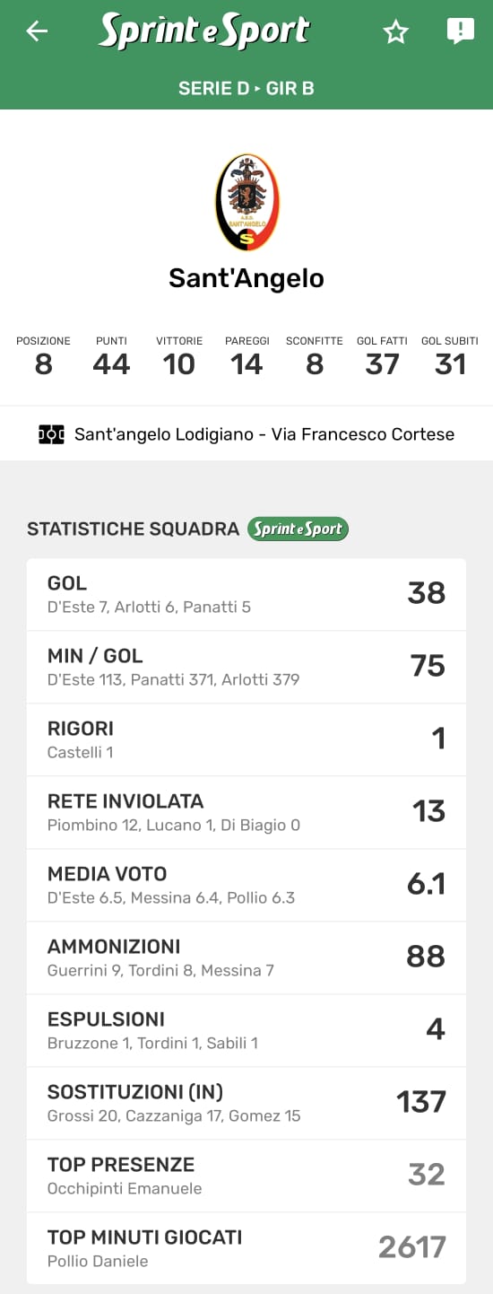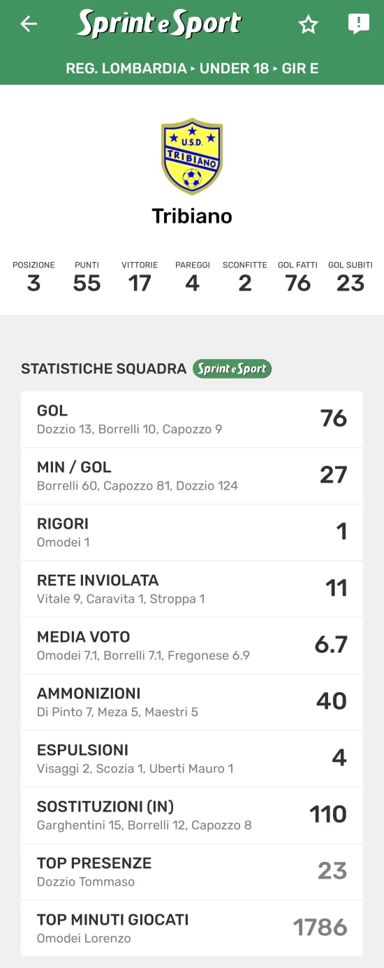 Le statistiche della TUA SQUADRA le trovi SOLO SULL'APP DI SPRINT E SPORT: clicca l'immagine per scaricarla!