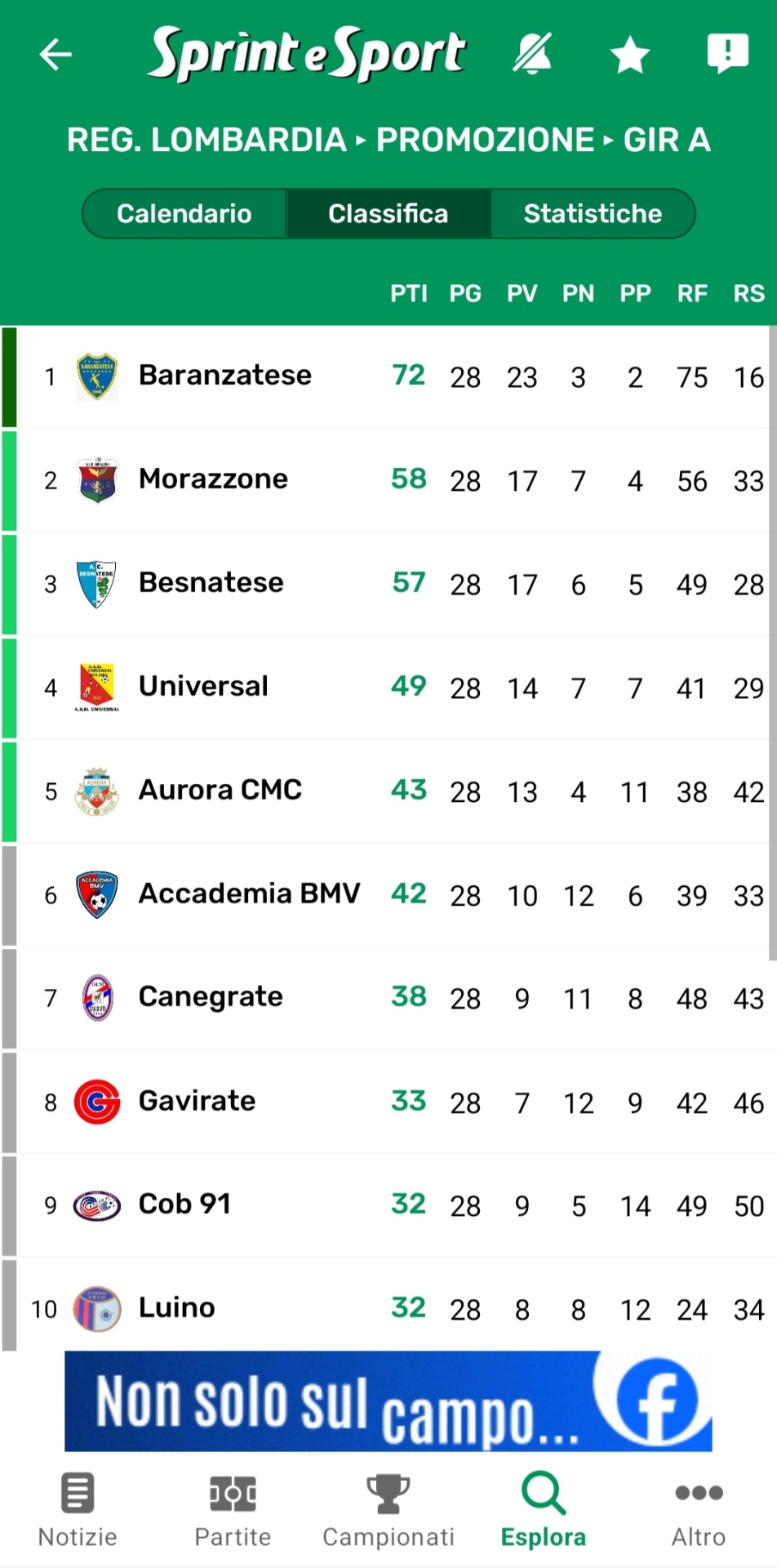 Lo stesso che deve fare la Cob 91, a secco di vittorie da 4 partite e sconfitta 3-0 da un Gavirate in grande spolvero nel girone di ritorno. Le reti rossoblù di Romano (50'), Pliscovaz (65') e Martinoia (78') arrivano tutte nella ripresa: «Una vittoria che ci lascia la gioia di assaporare i tre punti che ci sono sfuggiti contro Valle Olona e Uboldo - la definisce Costanzo Celestini - Nel primo tempo non siamo stati molto brillanti, ma nella ripresa abbiamo dominato e il risultato rispecchia l'andamento della sfida. L'unico rammarico che abbiamo è quello di aver lasciato per strada qualche punto nelle ultime settimane, ma dobbiamo guardare con fiducia al rush finale: c'era un handicap notevole al termine dell'andata rispetto alle squadre fuori dalla zona playout». Trema la Cob 91, ora a una sola lunghezza di vantaggio dalla zona playout: «Penso che nel primo tempo abbiamo avuto un po' di sfortuna, colpendo qualche palo di troppo», analizza Maurizio Provasi, anche se ammette che «Nel secondo tempo siamo rimasti in spogliatoio, loro hanno giocato da grande squadra e hanno meritato ampiamente la vittoria».