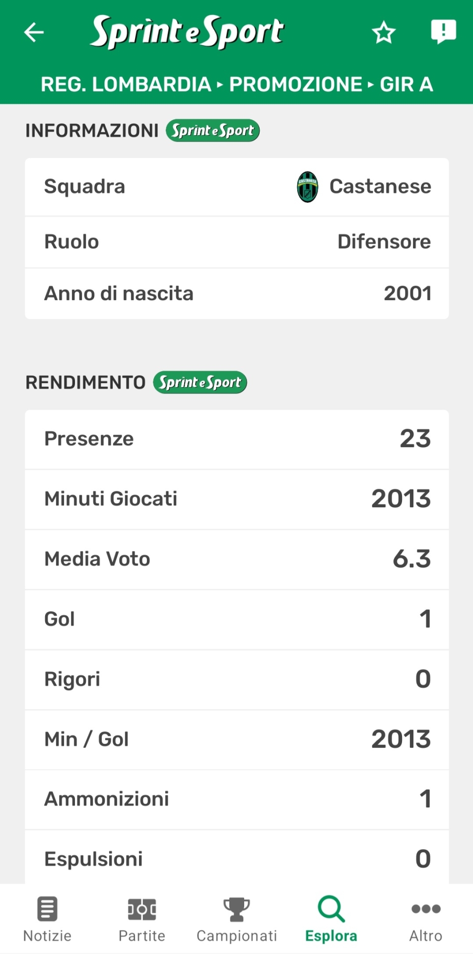 Le statistiche complete di Pietro Martinoia SOLO sull'app di Sprint e Sport. Clicca per scaricare l'app e abbonati