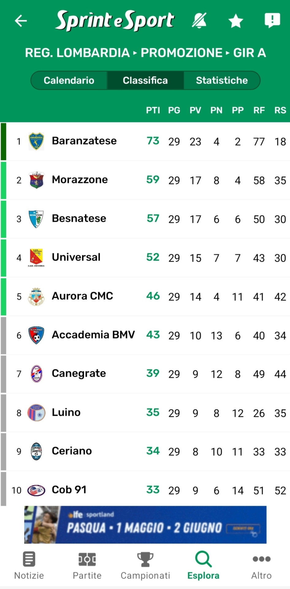 L'organico per la prossima edizione del campionato di Promozione inizia ad acquisire una forma più definita. Si garantiscono un posto per la stagione 25/26 il Luino di Stefano Bettinelli, la Cob 91 di Maurizio Provasi, il Ceriano di Gionata Brittanni e il Gavirate di Costanzo Celestini. Queste ultime due raggiungono il paradiso terrestre della permanenza in maniera diametralmente opposta. Il Ceriano strapazza il Gavirate 3-0 in uno scontro diretto a senso unico in favore dei brianzoli. Bottino pieno anche per il Luino a Besnate (2-1), mentre la Cob 91 si districa dal complicato groviglio dei playout grazie a un 2-2 casalingo e agli scontri diretti favorevoli contro Verbano e Castanese. Il Valle Olona rimonta la Baranzatese e tiene viva l'ultima speranza salvezza; l'Aurora CMC espugna 3-0 Uboldo ma non basta per rimanere sul treno playoff insieme all'Universal, vittoriosa 2-1 sull'Olimpia Tresiana.