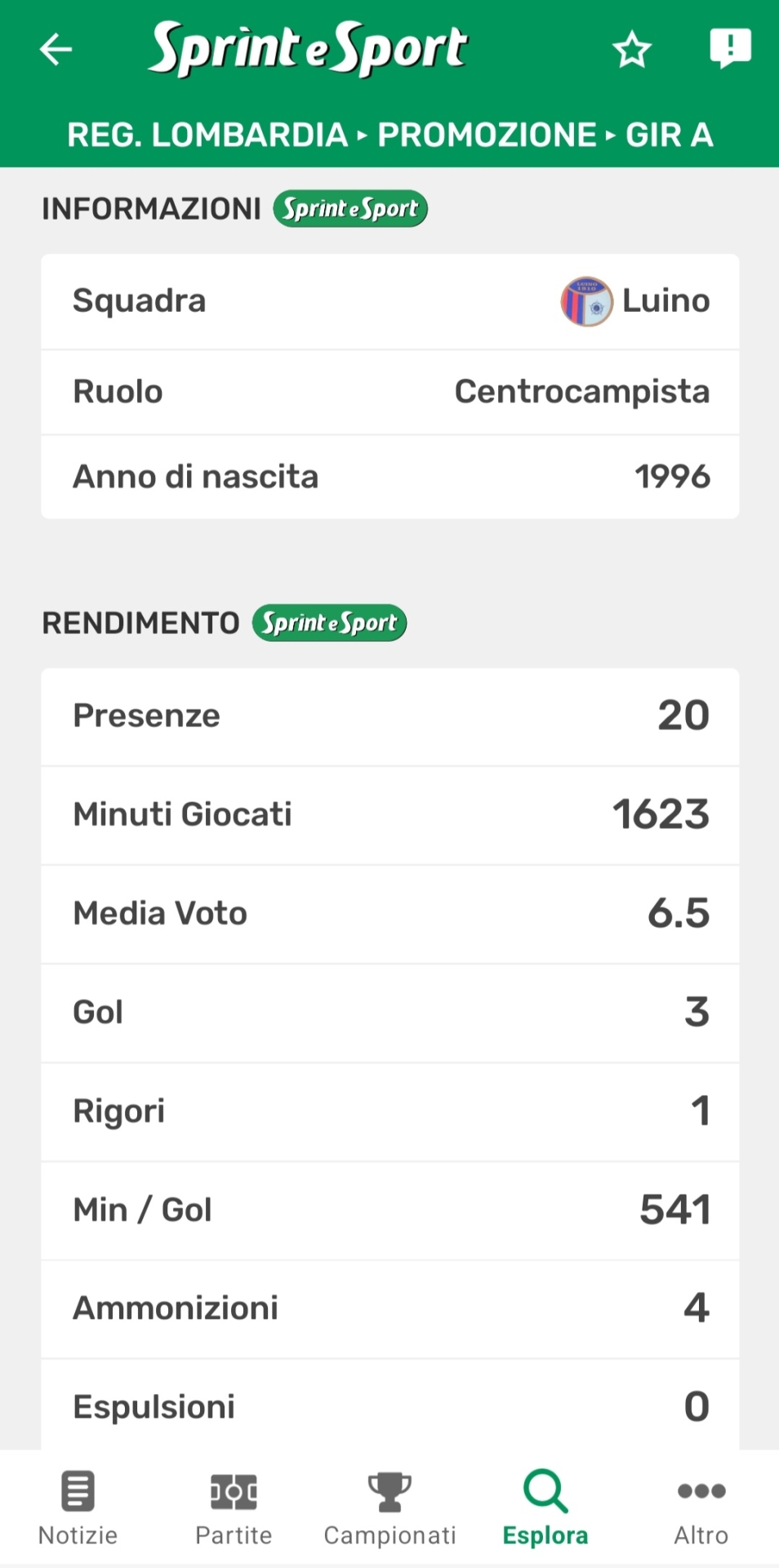 Muovere i primi passi nella squadra della propria città rappresenta un trampolino di lancio verso palcoscenici più ampi. Lo è stato per Andrea Pirlo, cresciuto calcisticamente nel Brescia ma diventato grande con le maglie di Milan, Juventus e della Nazionale italiana. Lo è stato per Marco Verratti, protagonista assoluto nella promozione in Serie A del Pescara di Zdenek Zeman. Lo è stato per il "divin codino" Roberto Baggio, allevato alla corte del Lanerossi Vicenza prima di segnare l'epoca degli indimenticabili anni novanta. Portare con sé l'orgoglio delle proprie origini e il ricordo delle prime emozioni vissute "a casa" contribuisce a creare una forte connessione tra calciatori, squadre e città. Come nel caso di Lorenzo Lercara, centrocampista classe 1996 nato a Luino, non solo dal punto di vista sportivo, e cresciuto nella cantera del Varese. Dopo aver vinto un campionato d'Eccellenza con i biancorossi (e aver vissuto sulla propria pelle le scottature di due fallimenti), Lercara è tornato nella sua città natale contribuendo al raggiungimento di due traguardi: la storica vittoria della Coppa Lombardia Prima Categoria, nella scorsa stagione, e la successiva salvezza nel girone A di Promozione, torneo da cui il Luino è rimasto assente per 12 anni.
