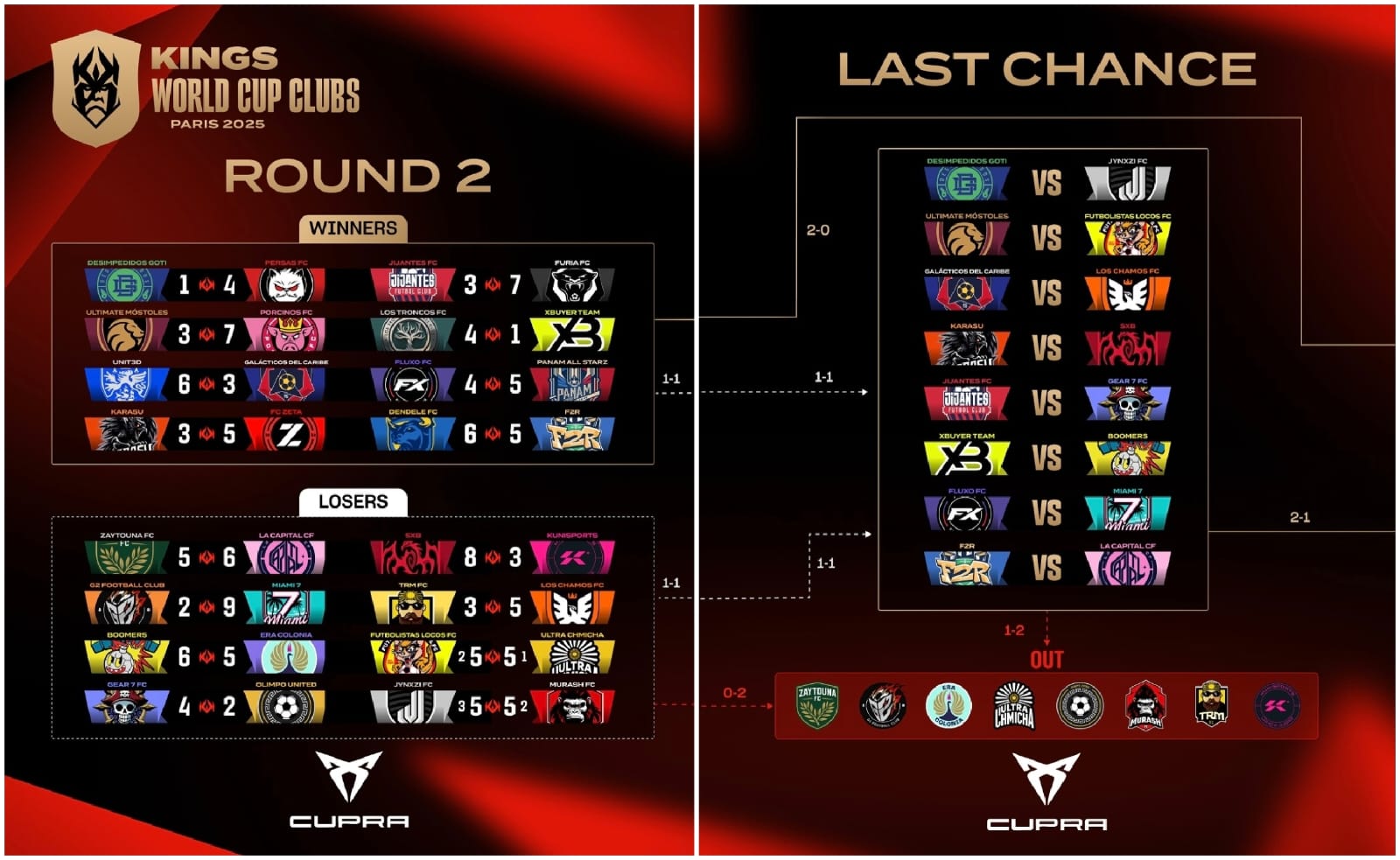 Favori del pronostico che vanno in direzione Spagna anche nel match successivo, quello che vedrà i Campioni degli Ultimate Móstoles sfidare i tedeschi di Kenan Yildiz, ovvero i Futbolistas Locos. A chiudere il programma un doppio incontro in salsa americana: Galácticos del Caribe-Los Chamos (Repubblicana Dominicana-Venezuela) e Fluxo-Miami 7 (Brasile-USA).