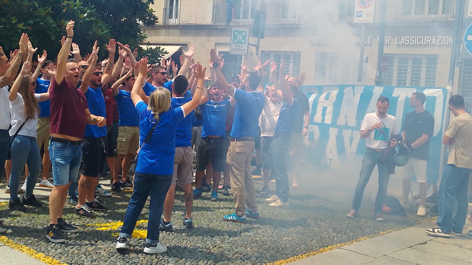 Il microfono è poi passato a Luca Biglieri che ha parlato a nome dell'associazione Sioux. Biglieri ha subito ringraziato tutti i presenti:«Per me e per il gruppo di tifosi che rappresento è una gioia enorme tornare a vedere cucito sul petto di una squadra il nostro amato e storico logo che abbiamo tifato per tantissimi anni. Il poter vestire questo marchio è un riconoscimento per la città intera ed è il modo per far riconoscere Pavia ovunque giochi la squadra». Biglieri ha ringraziato poi i tantissimi giovani presenti alla cerimonia e ha quindi voluto ripercorrere le vicende che hanno caratterizzato la storia dell'A.C. Pavia negli ultimi anni: nel 2016 è arrivata la sentenza del fallimento della società, ai tempi guidata da una dirigenza cinese.