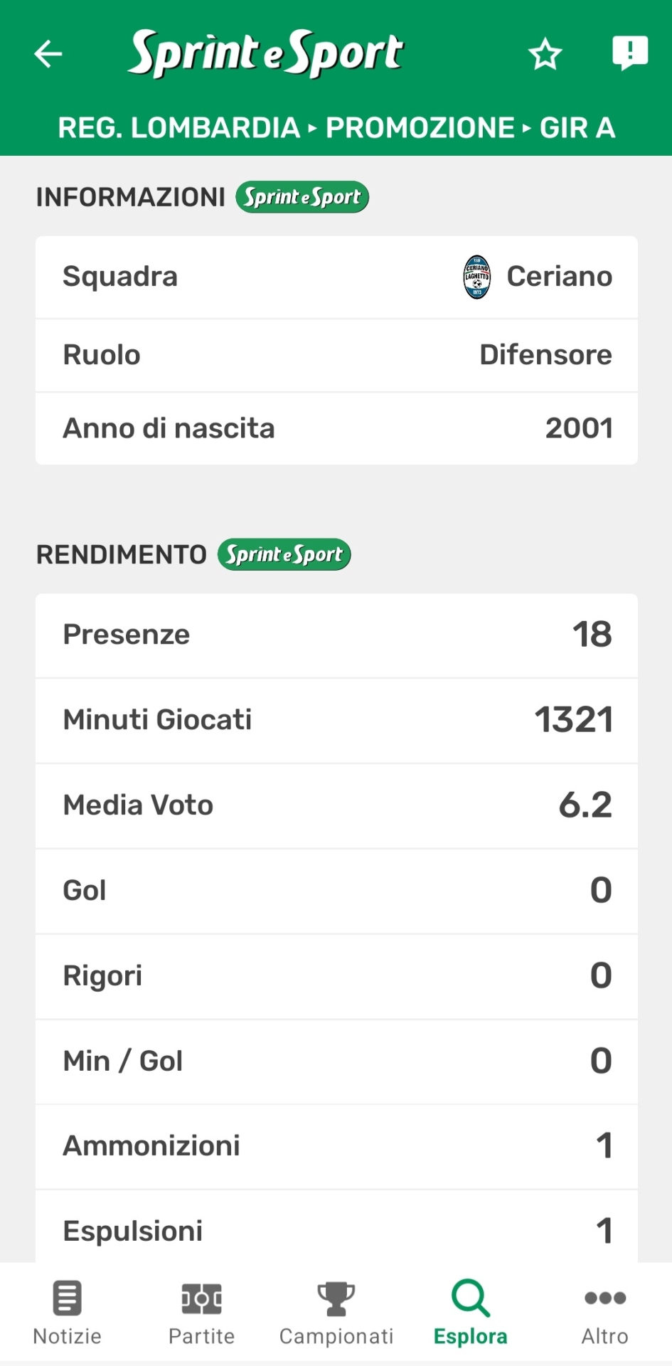 Le statistiche di Guglielmo Degiorgi relative alla stagione appena conclusa. Clicca QUI per scaricare l'app e seguire la tua squadra