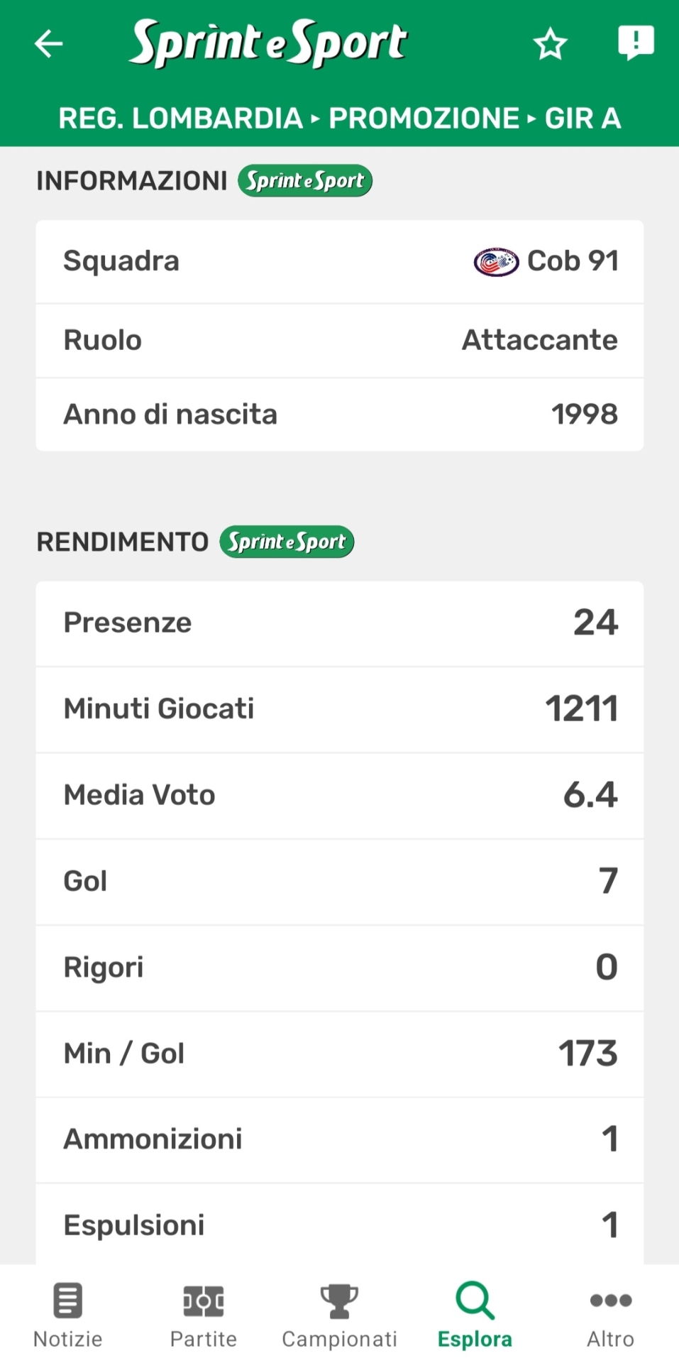 Le statistiche di Mattia Siviero relative alla stagione appena conclusa. Clicca QUI per scaricare l'app e seguire la tua squadra