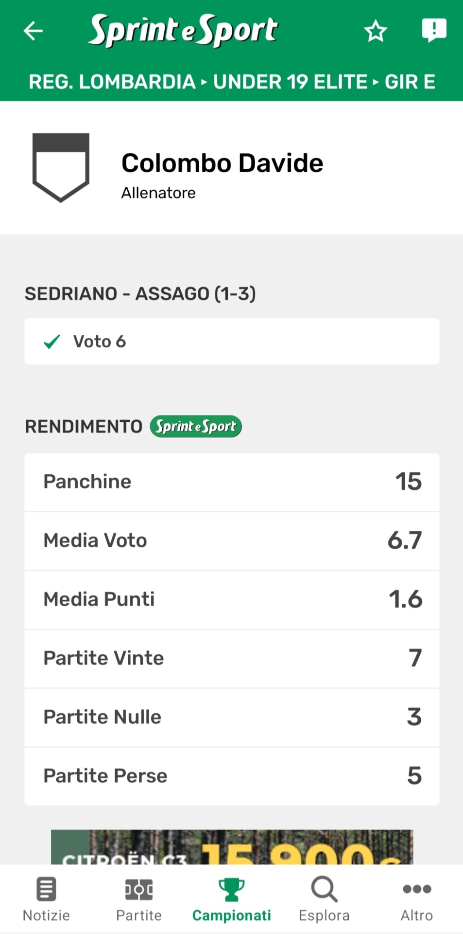 Le statistiche di Davide Colombo relative alla stagione appena conclusa. Clicca QUI per scaricare l'app e seguire la tua squadra