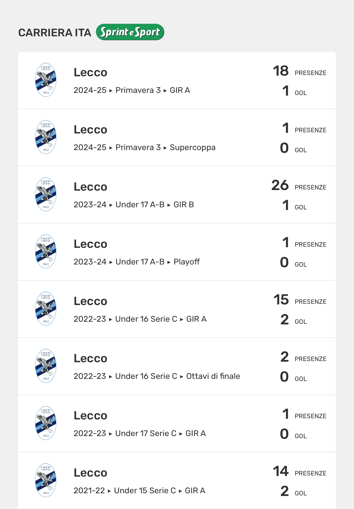La carriera di Nocito con il Lecco. Per tutte le statistiche dei settori giovanili professionistici clicca sull'immagine e scarica gratuitamente l'app di Sprint e Sport!