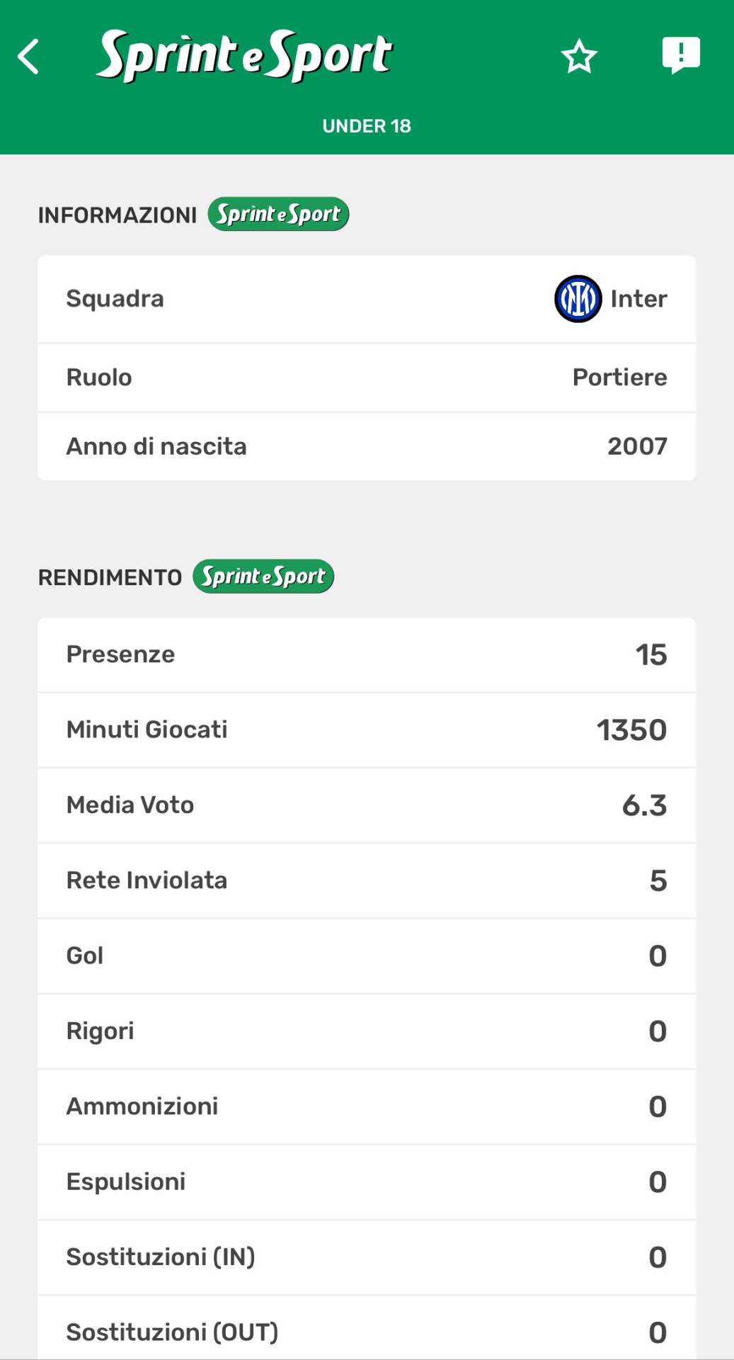 L'ultima stagione di Michielan con l'Inter. Per tutte le statistiche sulle giovanili dei campionati Nazionali, clicca sull'immagine e scarica gratuitamente l'app di Sprint e Sport!