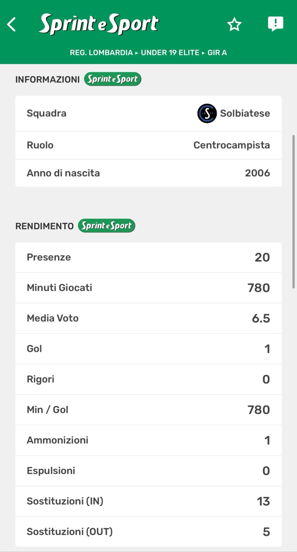 Le statistiche in campionato di Zanetti. Per tutte le statistiche dell'universo Dilettanti clicca sull'immagine e scarica gratuitamente l'app di Sprint e Sport!