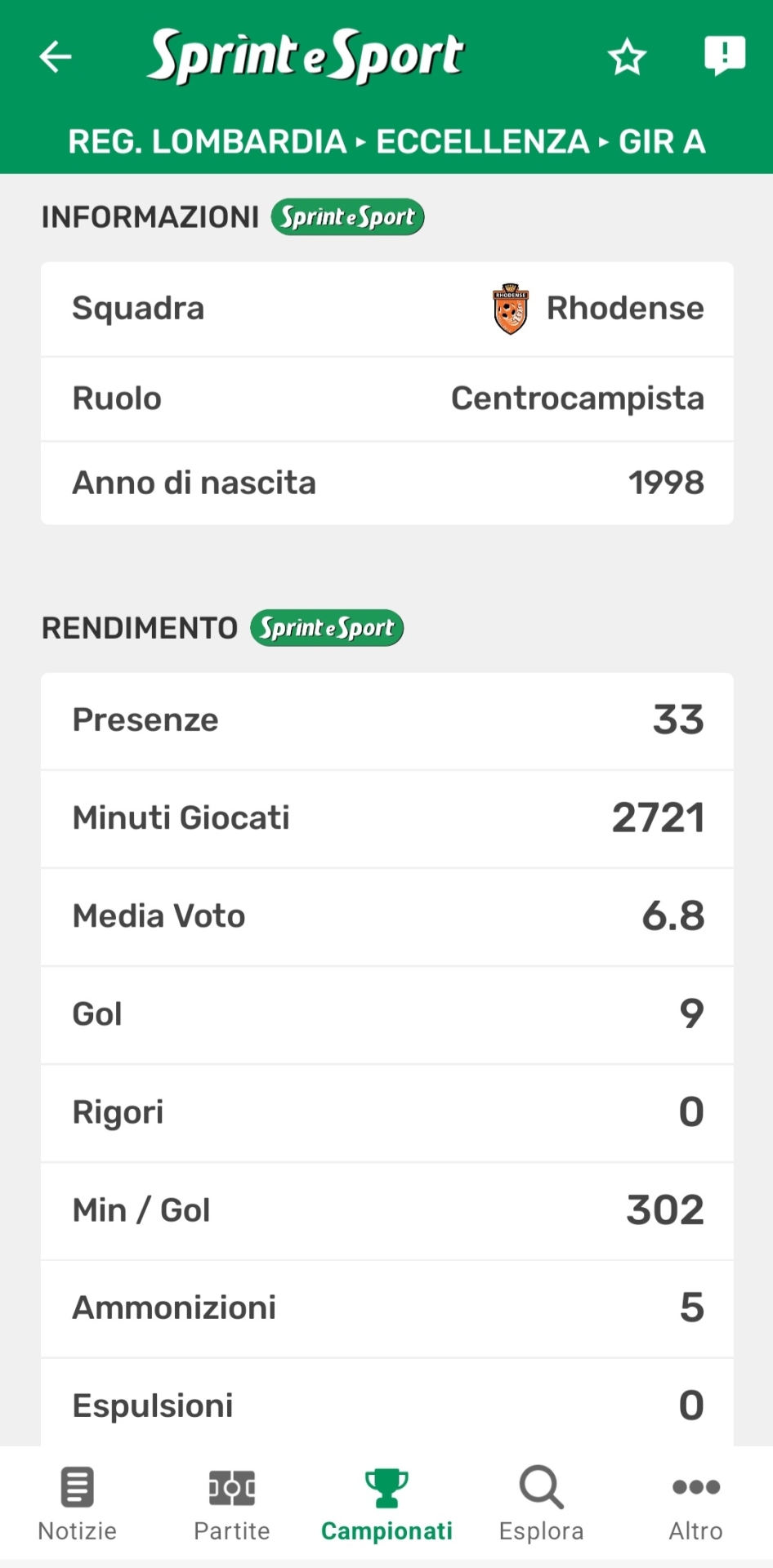 Le statistiche di Fabrizio Pedergnana relative alla stagione appena conclusa. Clicca QUI per scaricare l'app e seguire la tua squadra