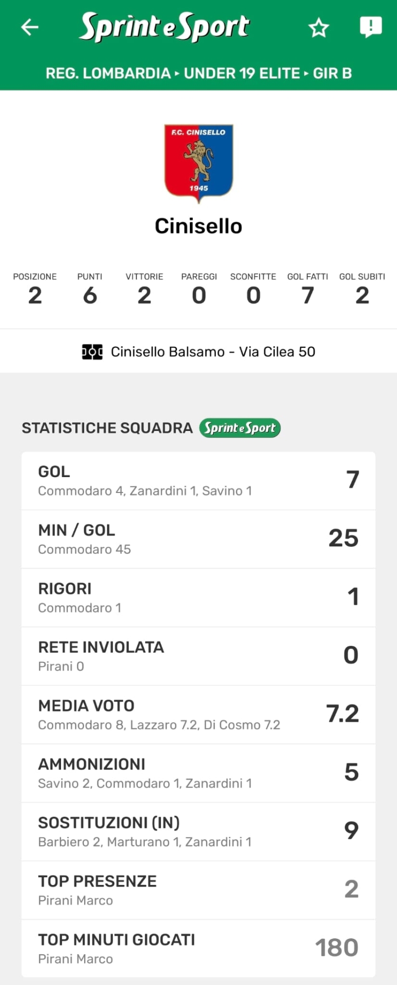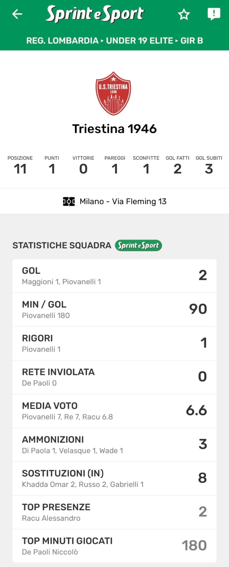 Le statistiche complete della tua squadra le trovi SOLO sull'app di SPRINT E SPORT: clicca l'immagine per scaricarla