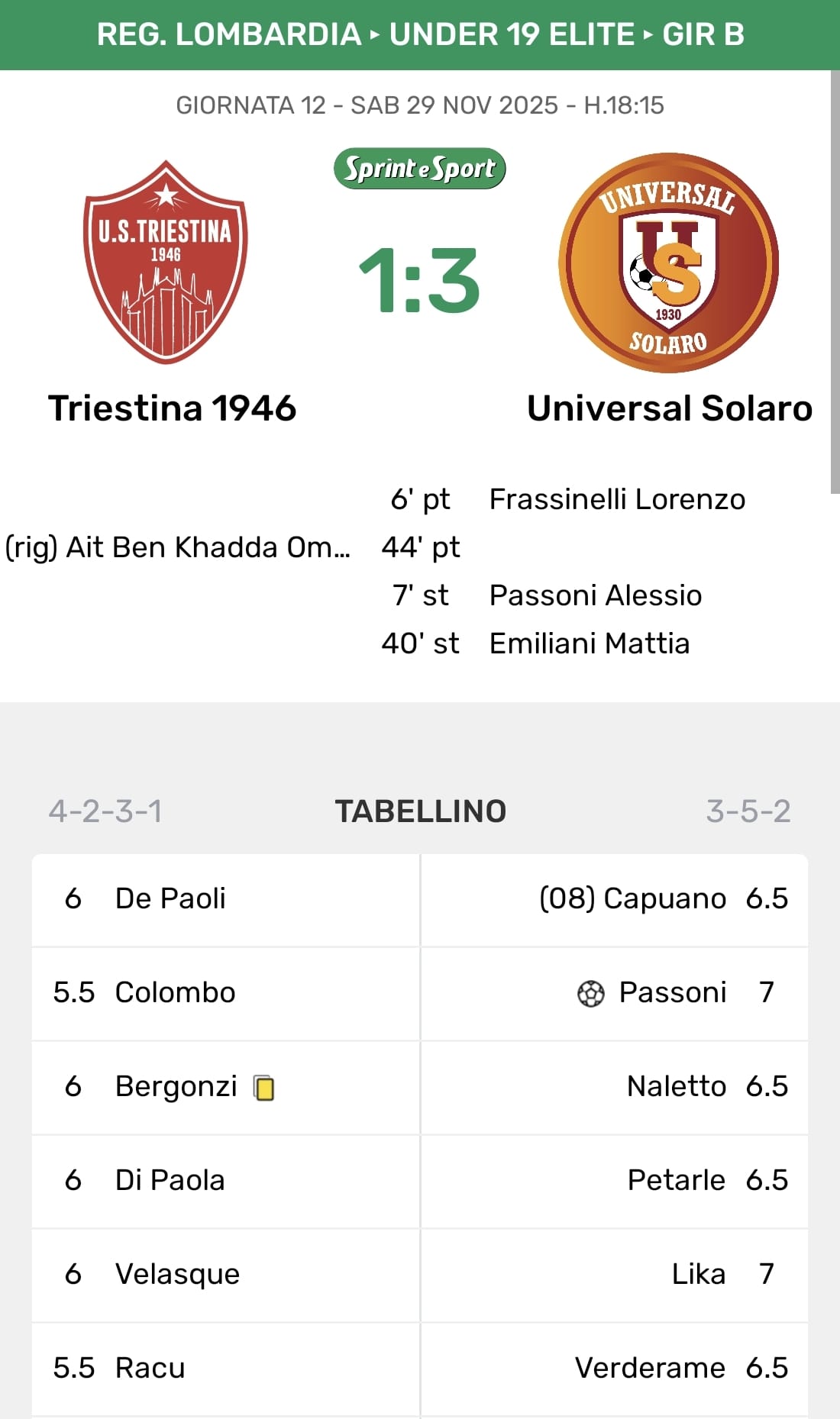 UNDER 19 ÉLITE UNIVERSAL SOLARO • Alessio Passoni, tra i migliori in campo