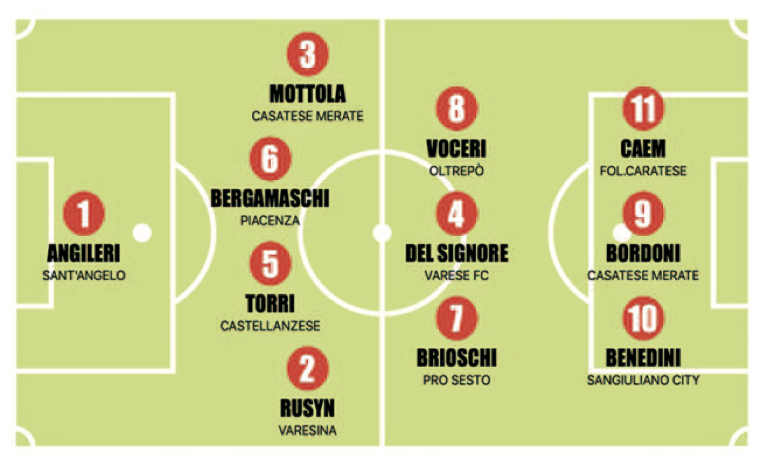 Altro pareggio illustre invece per l’Oltrepò, che nelle ultime quattro gare ha ottenuto quattro pareggi di cui tre con le prime in classifica. La Varesina trova il vantaggio con un gran gol di Rusyn, ma pochi minuti dopo è Voceri a trovare il jolly sotto il sette che vale l’1-1 finale. In fiducia il Sangiuliano che trova la terza vittoria di fila e la Casatese Merate che si avvicina prepotentemente alla zona playoff.