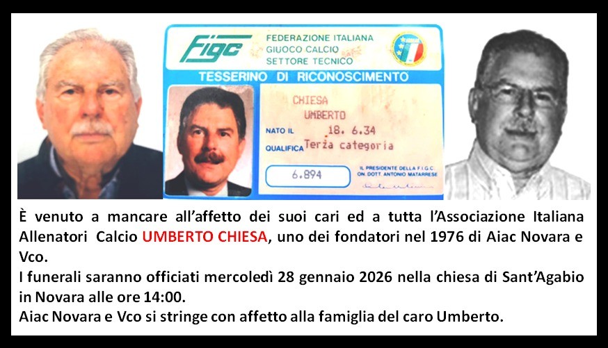 Il calcio novarese perde una figura di riferimento: all’età di 91 anni è scomparso Umberto Chiesa, protagonista per decenni del movimento dilettantistico locale e della formazione tecnica in Piemonte. Nato nel 1934, Chiesa ha attraversato quasi un secolo di storia sportiva, diventando un punto di riferimento per generazioni di tecnici nel quadrante di Novara e del Verbano-Cusio-Ossola.