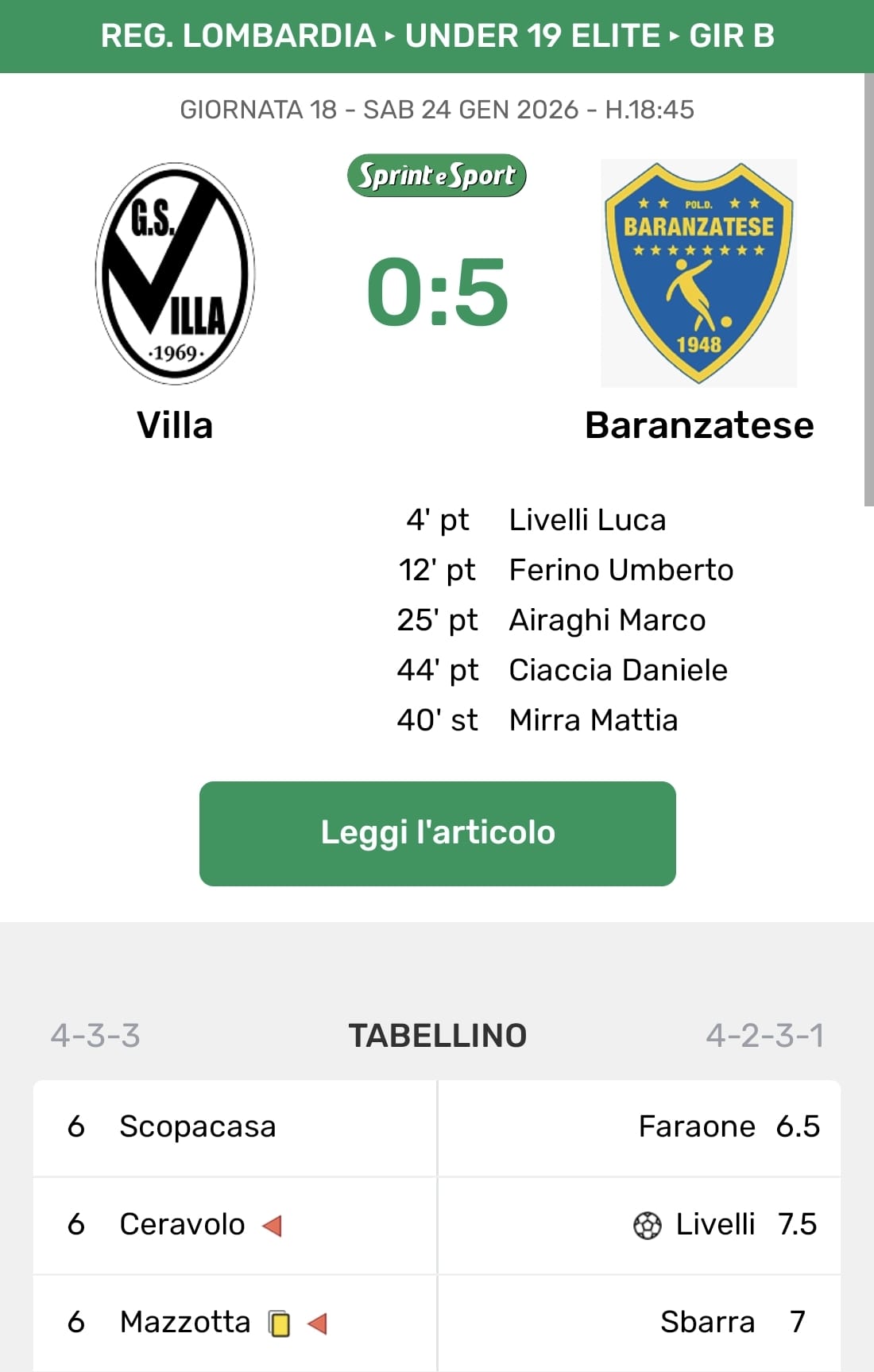 Chiuso un primo tempo senza storia, la Baranzatese abbassa leggermente i ritmi nel secondo tempo, gestendo il vantaggio e curando soprattutto la fase difensiva. Il Villa prova a resistere con grande sacrificio, ma al 40’ arriva anche il 5-0: Mirra parte in contropiede, salta l’avversario e batte il portiere, chiudendo definitivamente i conti. I ragazzi di Monaco celebrano così il terzo successo consecutivo, dato mancante dalle prime tre giornate di campionato, arricchito dalla valanga di 13 gol fatti. Numeri e prestazioni, su tutte quelle Ciaccia, Airaghi e Astori, alla prima da titolare, che permettono di inserirsi prepotentemente nella corsa per il podio, lontano un solo punto, anche se gli occhi possono sbirciare più su: il primo posto è a 3 lunghezze.