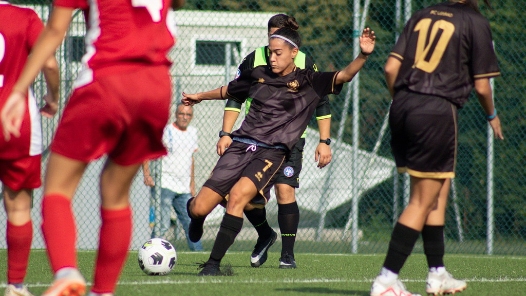 Lesmo che riparte dalle solite note, con l’importante ritorno dal primo minuto in mezzo al campo di Postiglione, che torna a guidare le compagne, sia sul piano emotivo che tecnico. Zagaria si affida alle certezze delle ultime giornate, con Canobbio che parte alta a destra nel trittico alle spalle di Cama, mentre Nascamani e Chignoli al centro della difesa chiusa da Florio e Gerosa sugli esterni. Fattore inizialmente determinante è proprio la numero 8 ospite, con una fase di surplus contro Dadati, che le permette di scoprire il Lesmo sulla destra, concedendo il fianco alle continue incursioni di Casa che lavora bene su tutta la linea orizzontale del campo. Proprio questi continui movimenti ad aprire portano alla prima ghiotta palla gol a firma Fiamma, con l’ex Como che azzarda un destro in diagonale, che attraversa pericolosamente tutta l’area di rigore terminando sul fondo. Un avvio positivo quanto a pressing alto da parte del Fiamma, che quando riesce a rimanere negli ultimi metri di campo è capace di rendersi pericoloso; al contrario, quando la palla scavalca il centrocampo, la sicurezza difensiva traballa e non poco. Il Lesmo cresce grazie all'inventiva di Ester Postiglione, che trova ritmo e più palloni giocabili, dando il via alla solita proficua collaborazione d’intenti con Ostini. Il copione è quello: sovrapposizione, attacco sulla profondità e ricerca del sinistro per andare verso la porta o con un pallone teso in area. Nonostante ciò il primo squillo porta la firma di Camilla Galbusera, con l’ex Lecco che sfodera un destro chirurgico che Berini toglie dall’incrocio.